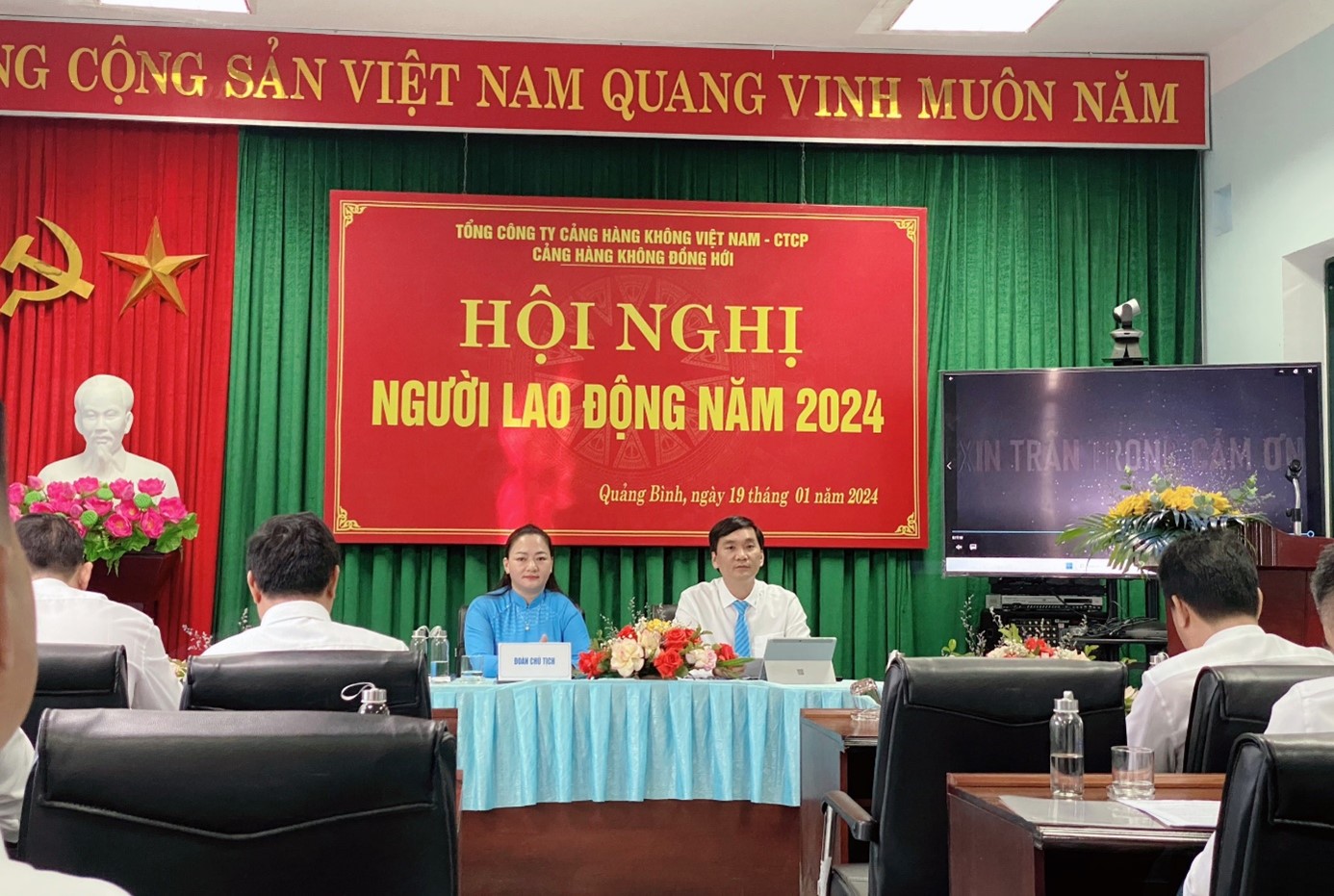 Ngày 19/01/2024, Cảng hàng không Đồng Hới đã long trọng tổ chức hội nghị đại biểu người lao động năm 2024 thành công tốt đẹp. Tham dự Hội nghị gồm 59 cán bộ, lãnh đạo chủ chốt của đơn vị và các đại biểu đại diện cho 162 cán bộ, nhân viên của Cảng hàng không Đồng Hới.