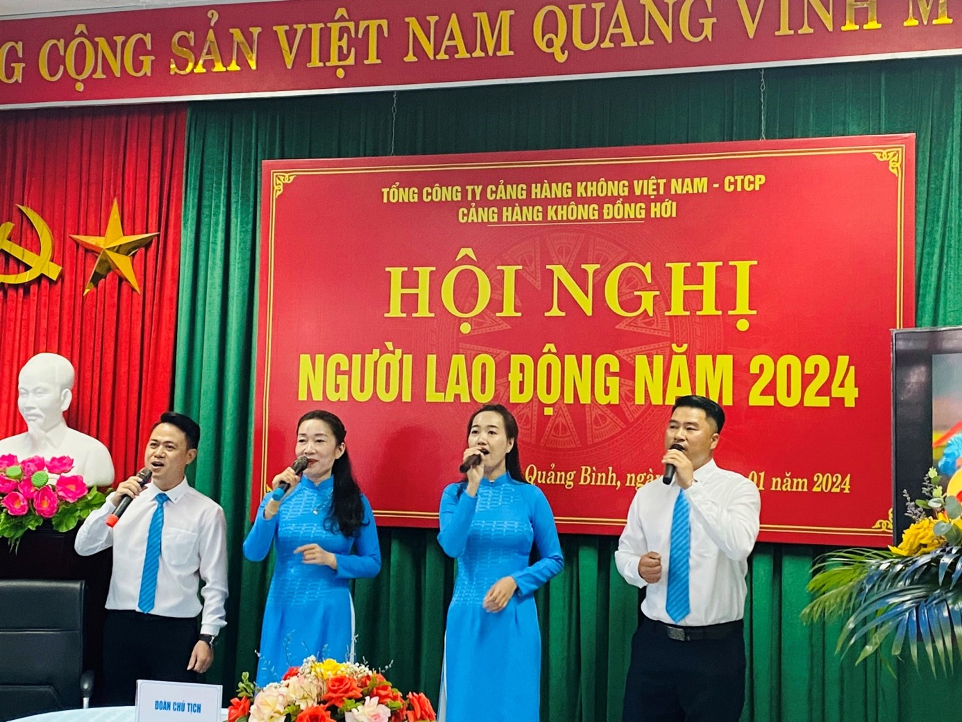 Văn nghệ chào mừng hội nghị người lao động Cảng HK Đồng Hới năm 2024.