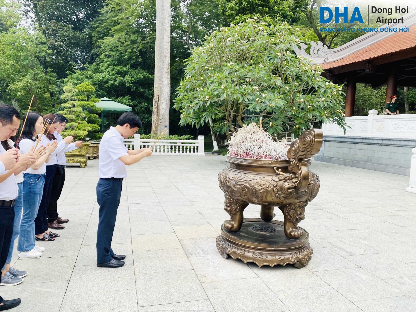 Đảng bộ Cảng hàng không Đồng Hới cũng đã dâng hương tại Nghĩa trang liệt sỹ Trường Sơn, nơi an nghỉ đời đời của các chiến sĩ đã hy sinh trên truyến đường mòn Hồ Chí Minh lịch sử, trong thời kỳ chống Mỹ cứu nước. để thể hiện lòng thương nhớ sâu sắc, niềm biết ơn vô hạn và sự tôn vinh của Cán bộ đảng viên Cảng hàng không Đồng Hới đối với những người con yêu quý trên mọi miền đất nước đã không tiếc máu xương cho sự nghiệp đấu tranh giải phóng và thống nhất đất nước. Cùng với đó Đảng bộ Cảng hàng không Đồng Hới cũng đã tổ chức dâng hương tưởng niệm tại Mộ Đại tướng Võ Nguyên Giáp. Vị tướng huyền thoại của dân tộc, người con ưu tú của quê hương Quảng Bình.