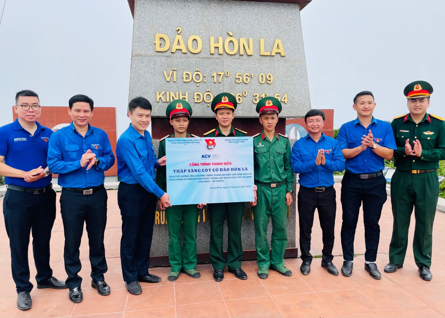 Đại diện Đoàn Thanh niên TCT Cảng HK Việt Nam trao tặng công trình thắp sáng ngon cờ đảo Hòn La