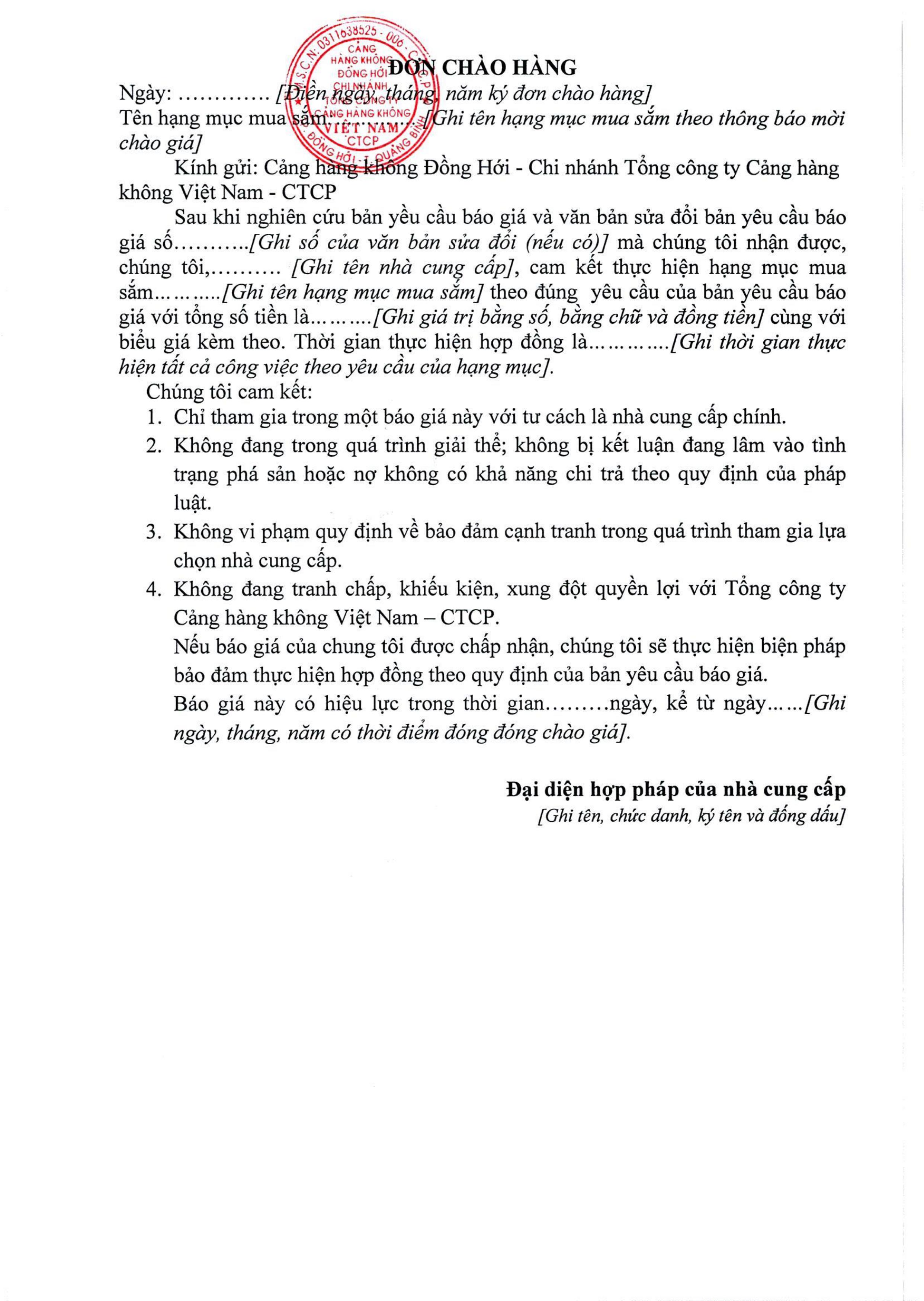 THÔNG BÁO MỜI CHÀO GIÁ V/v: “Mua sắm bảo hiểm năm 2026 cho phương tiện, trang thiết bị chuyên ngành hàng không và xe ô tô các loại tại CHK Đồng Hới”