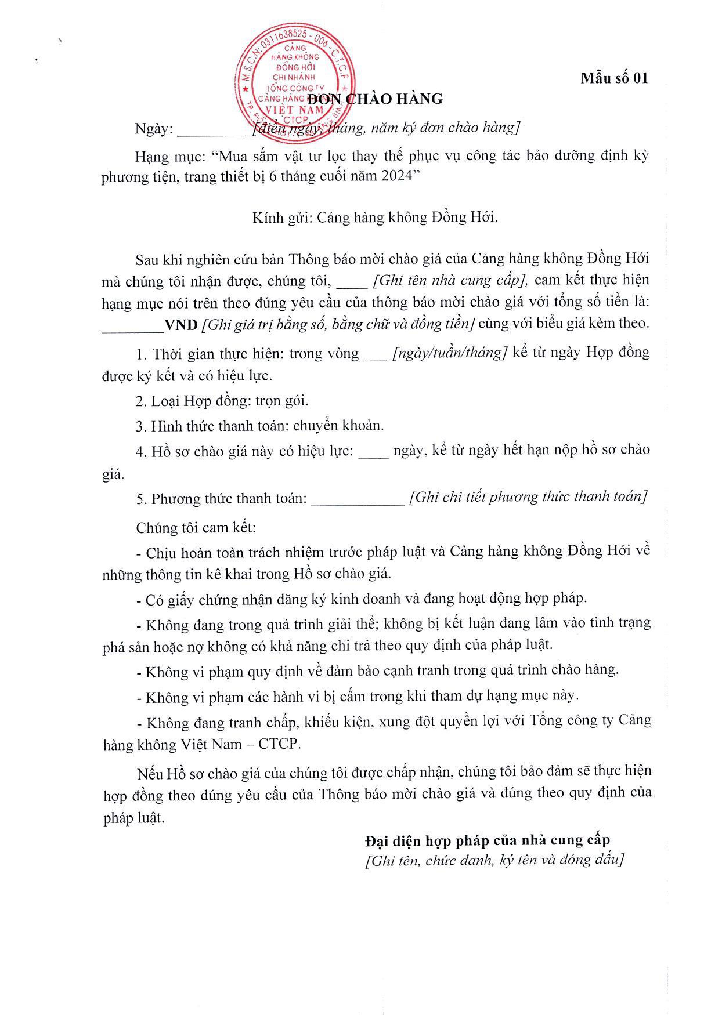 THÔNG BÁO MỜI CHÀO GIÁ V/v: “Mua sắm bảo hiểm năm 2026 cho phương tiện, trang thiết bị chuyên ngành hàng không và xe ô tô các loại tại CHK Đồng Hới”