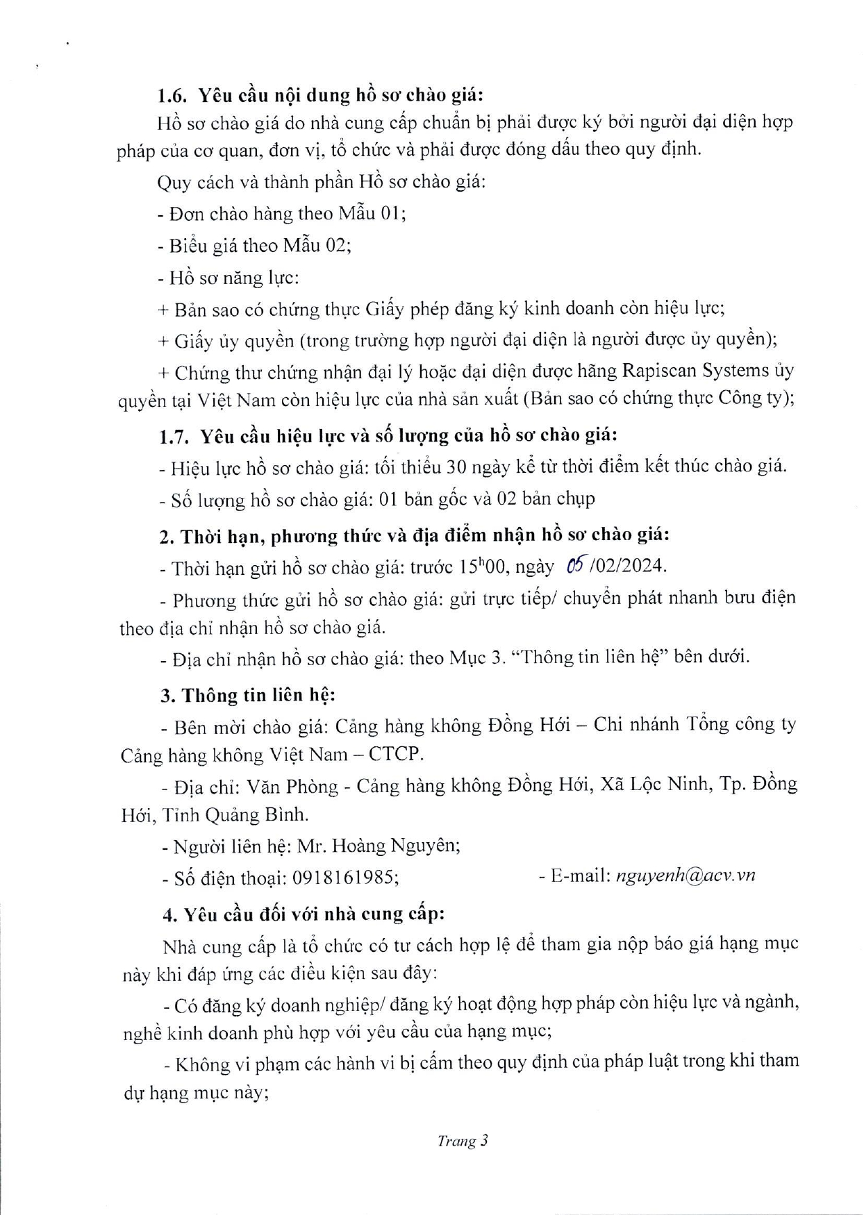 THÔNG BÁO MỜI CHÀO GIÁ V/v: “Mua sắm bảo hiểm năm 2026 cho phương tiện, trang thiết bị chuyên ngành hàng không và xe ô tô các loại tại CHK Đồng Hới”