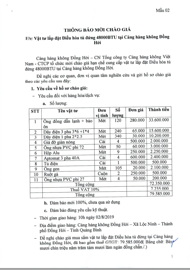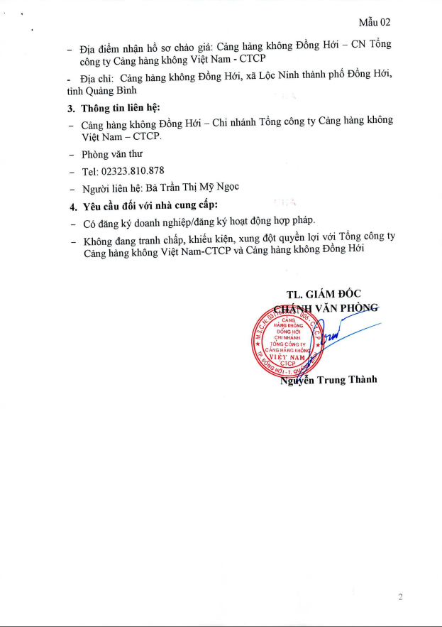 THÔNG BÁO MỜI CHÀO GIÁ V/v: “Mua sắm bảo hiểm năm 2026 cho phương tiện, trang thiết bị chuyên ngành hàng không và xe ô tô các loại tại CHK Đồng Hới”