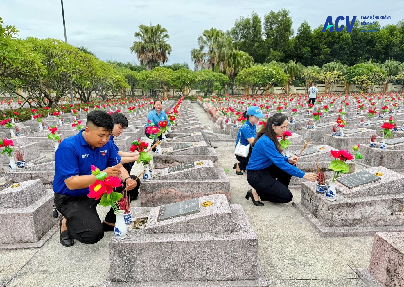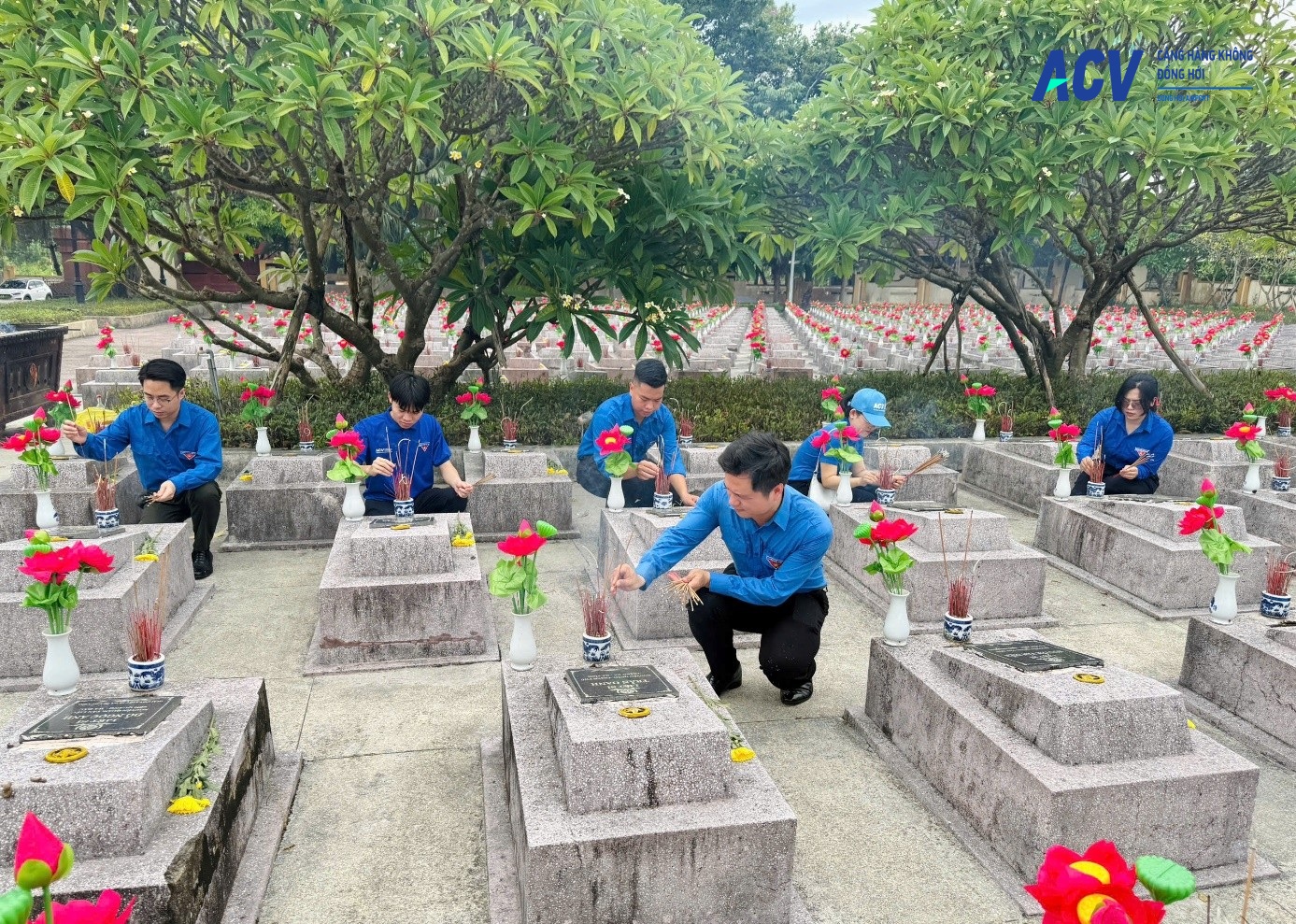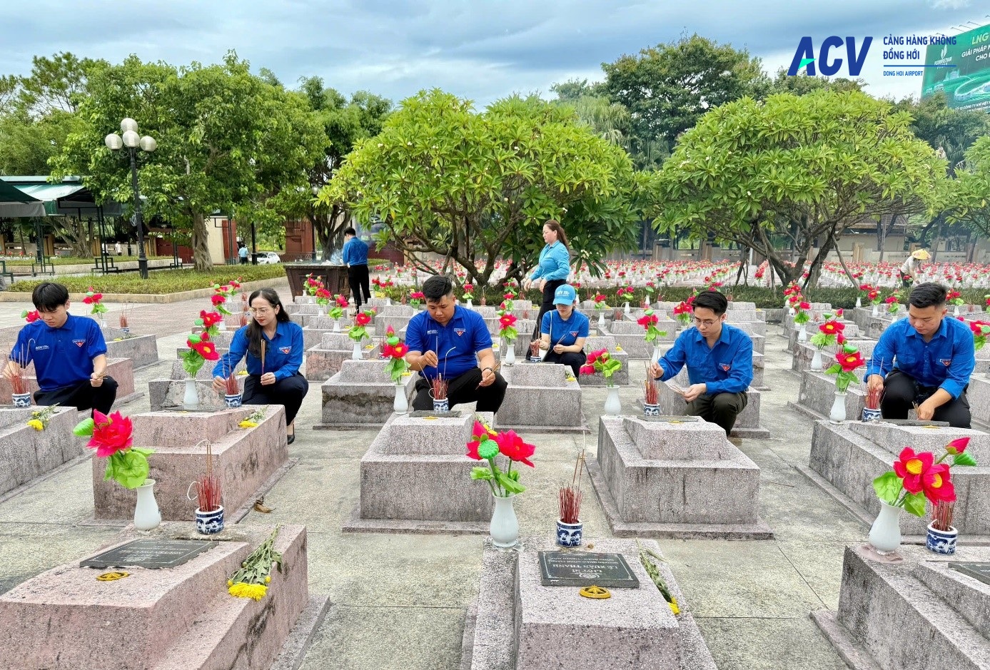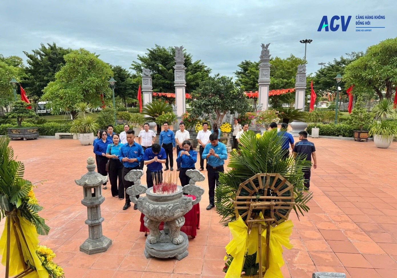 Đoàn thanh niên Cảng hàng không Đồng Hới thắp hương tri ân các Anh hùng liệt sỹ