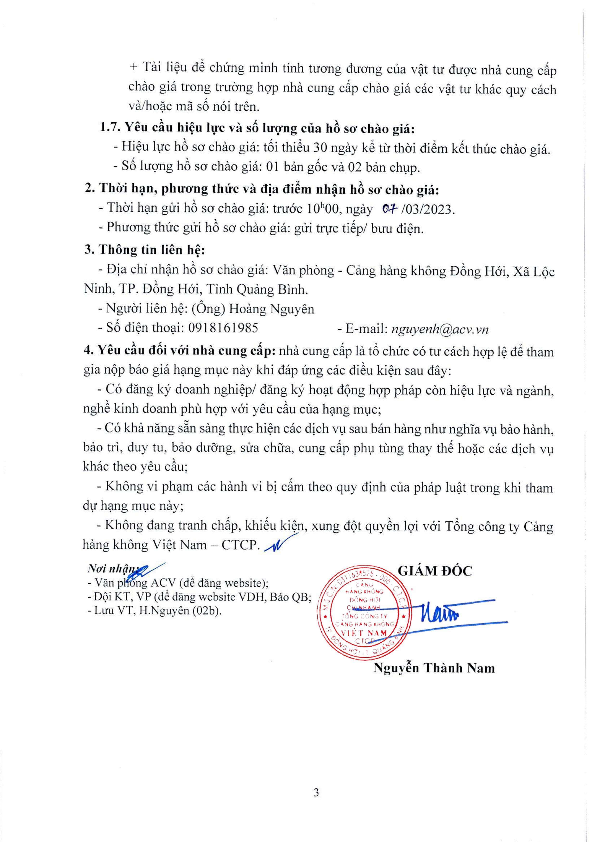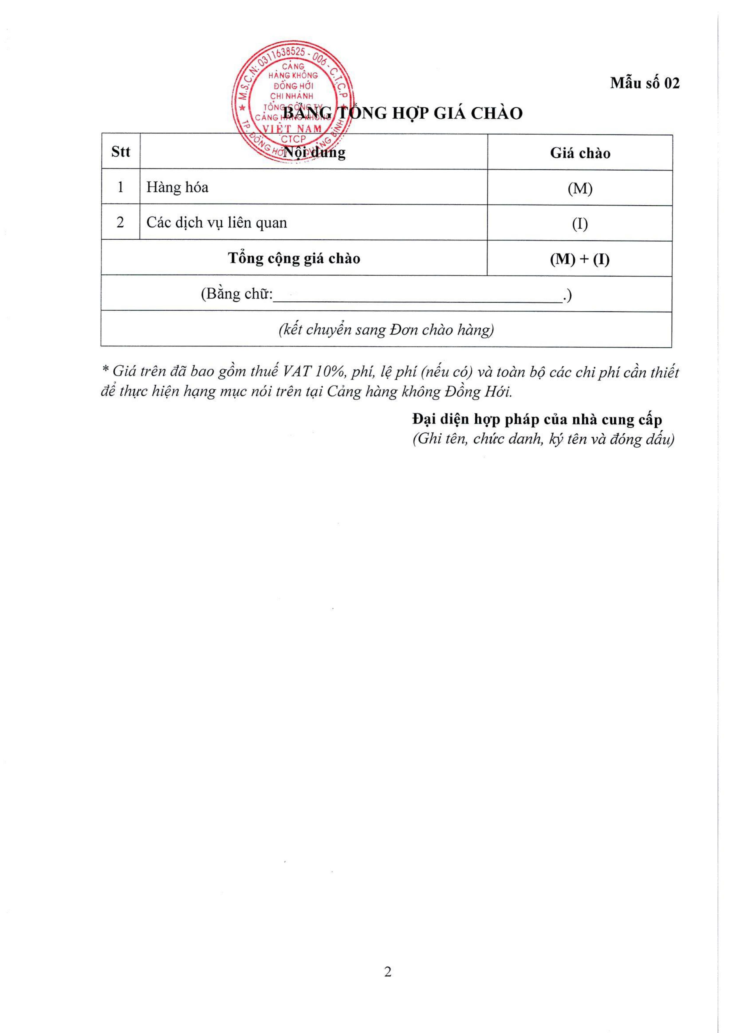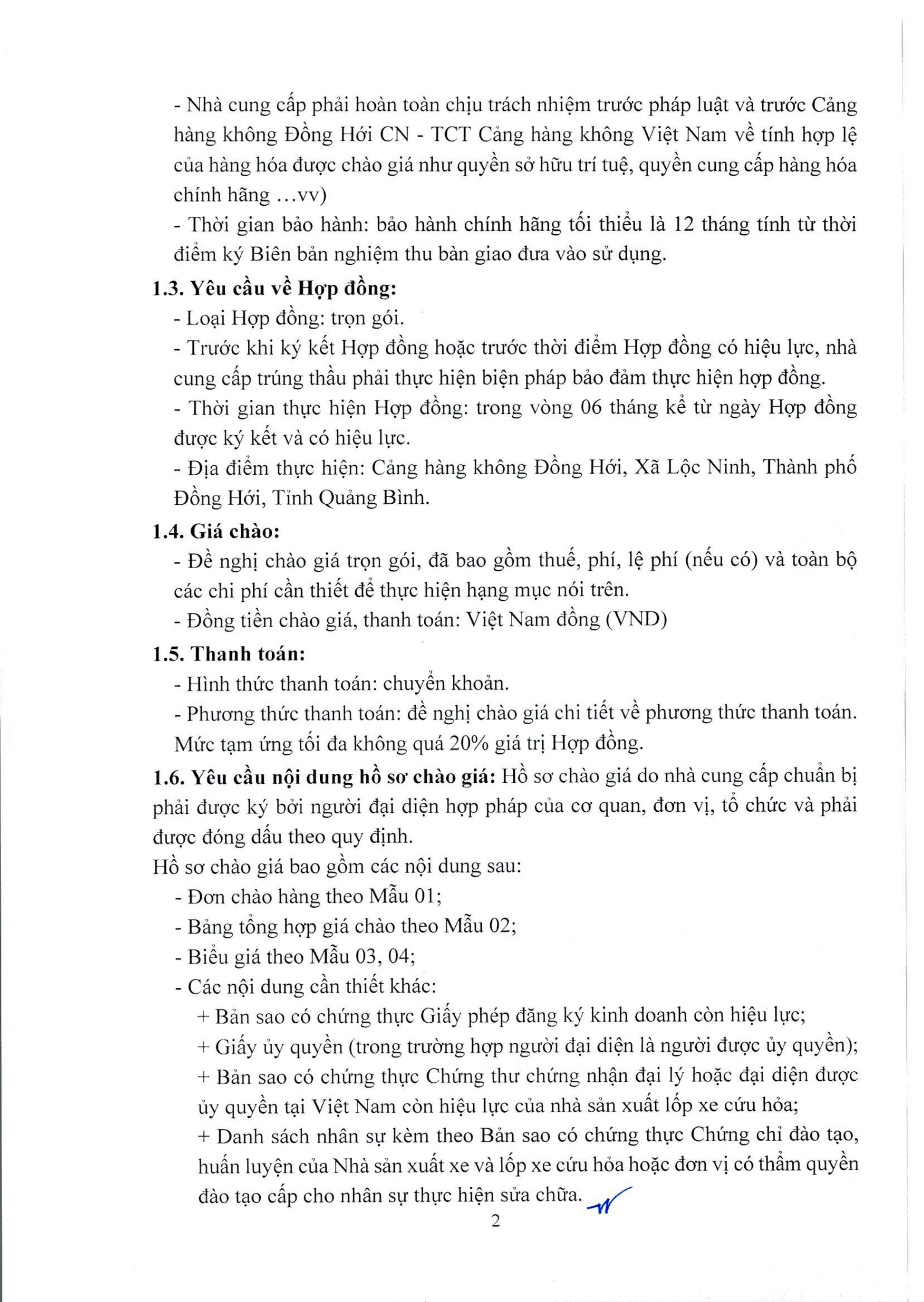 THÔNG BÁO MỜI CHÀO GIÁ V/v: “Mua sắm bảo hiểm năm 2026 cho phương tiện, trang thiết bị chuyên ngành hàng không và xe ô tô các loại tại CHK Đồng Hới”
