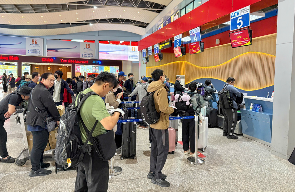 Hành khách trên chuyến bay quốc tế Đồng Hới – Đài Bắc làm thủ tục hàng không