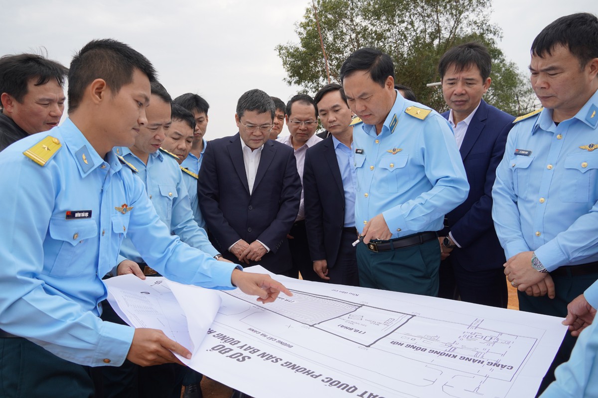 Đại diện lãnh đạo Quân chủng PK-KQ và UBND tỉnh kiểm tra thực địa khu đất quốc phòng tại khu vực Cảng hàng không Đồng Hới