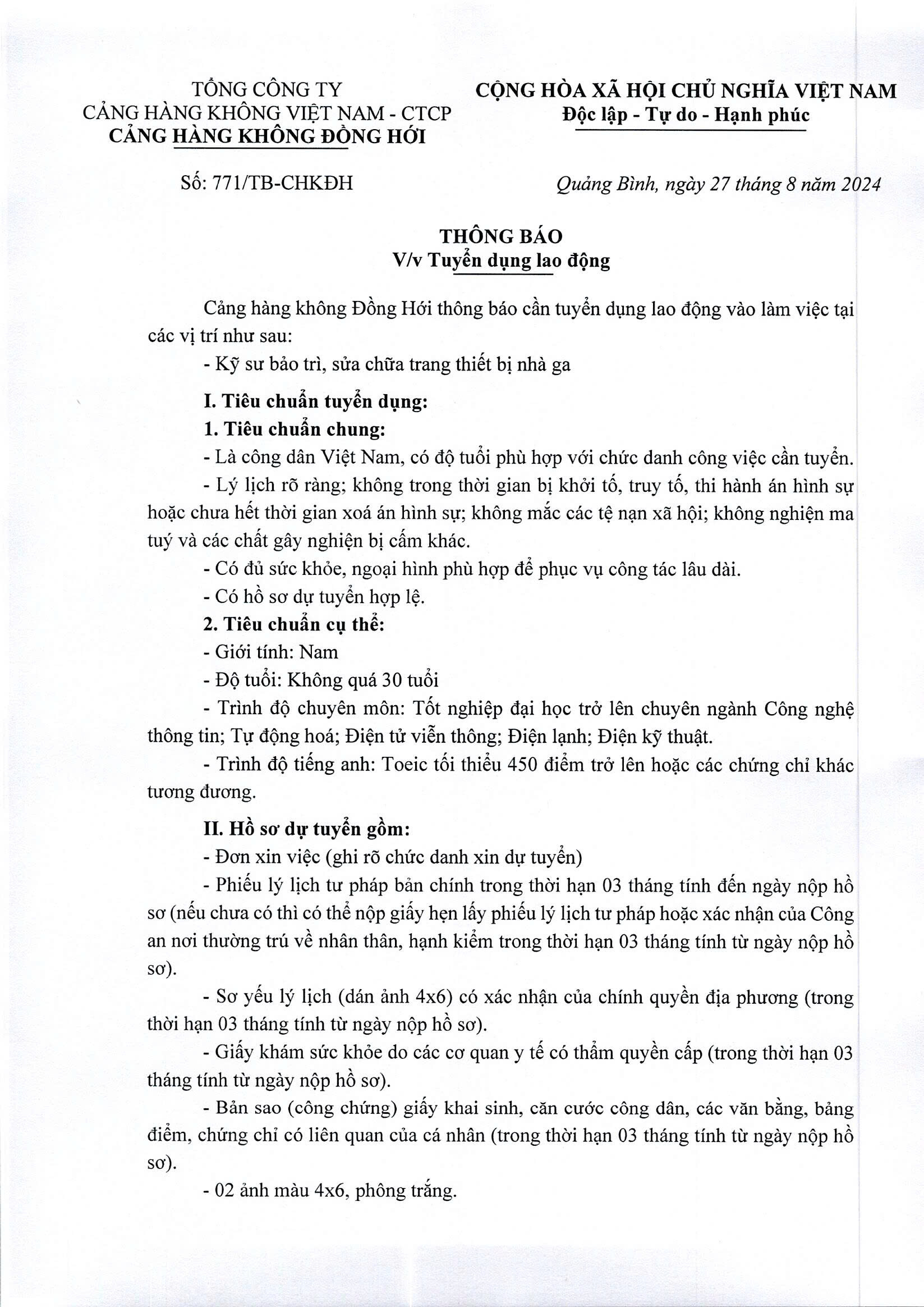 THÔNG BÁO V/v Tuyển dụng lao động thuê ngoài
