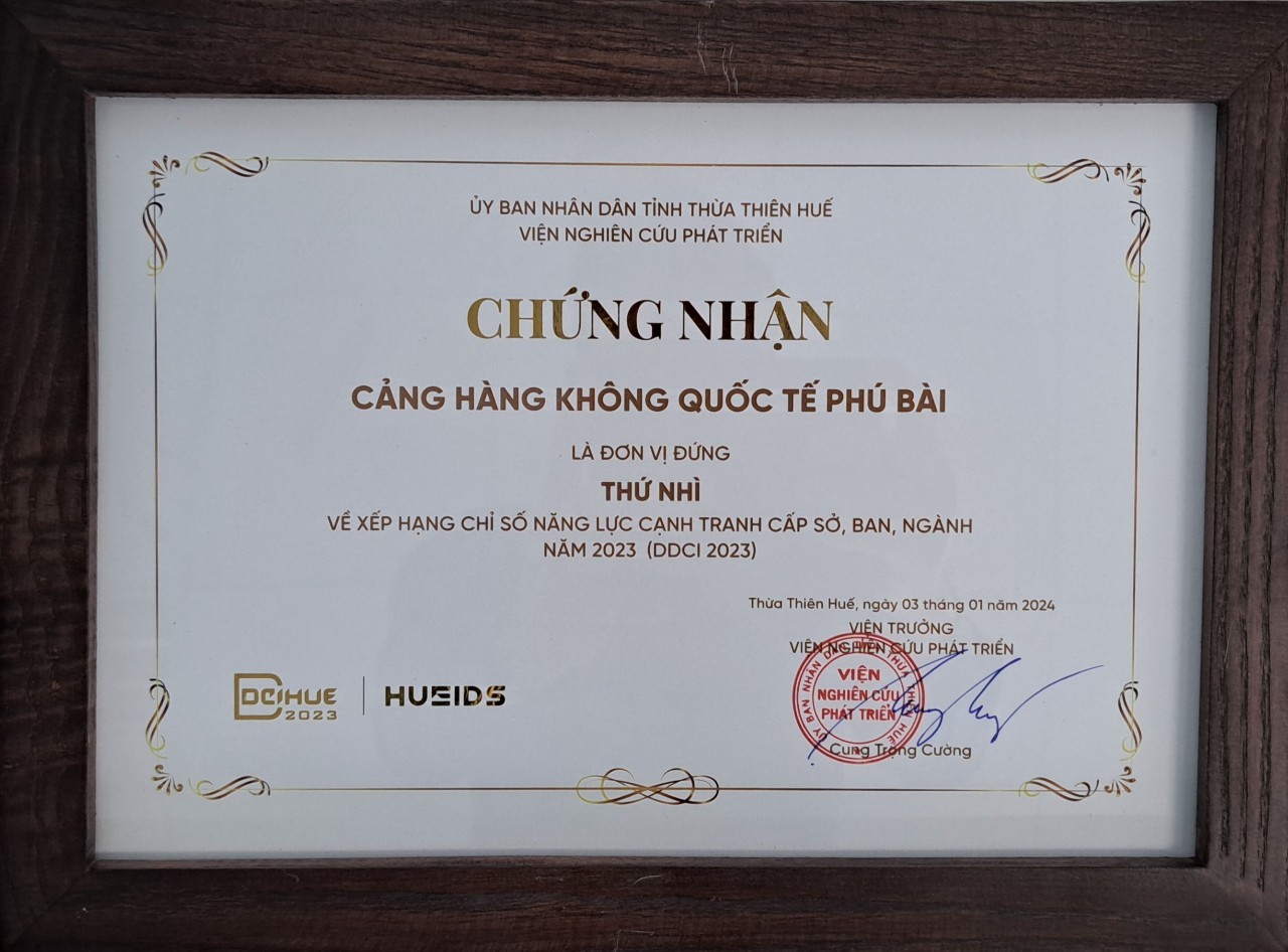 Uỷ ban nhân dân tỉnh Thừa Thiên Huế cũng tặng cờ cho Cảng hàng không quốc tế Phú Bài, biểu dương là đơn vị dẫn đầu trong phong trào thi đua tại tỉnh Thừa Thiên Huế năm 2023.