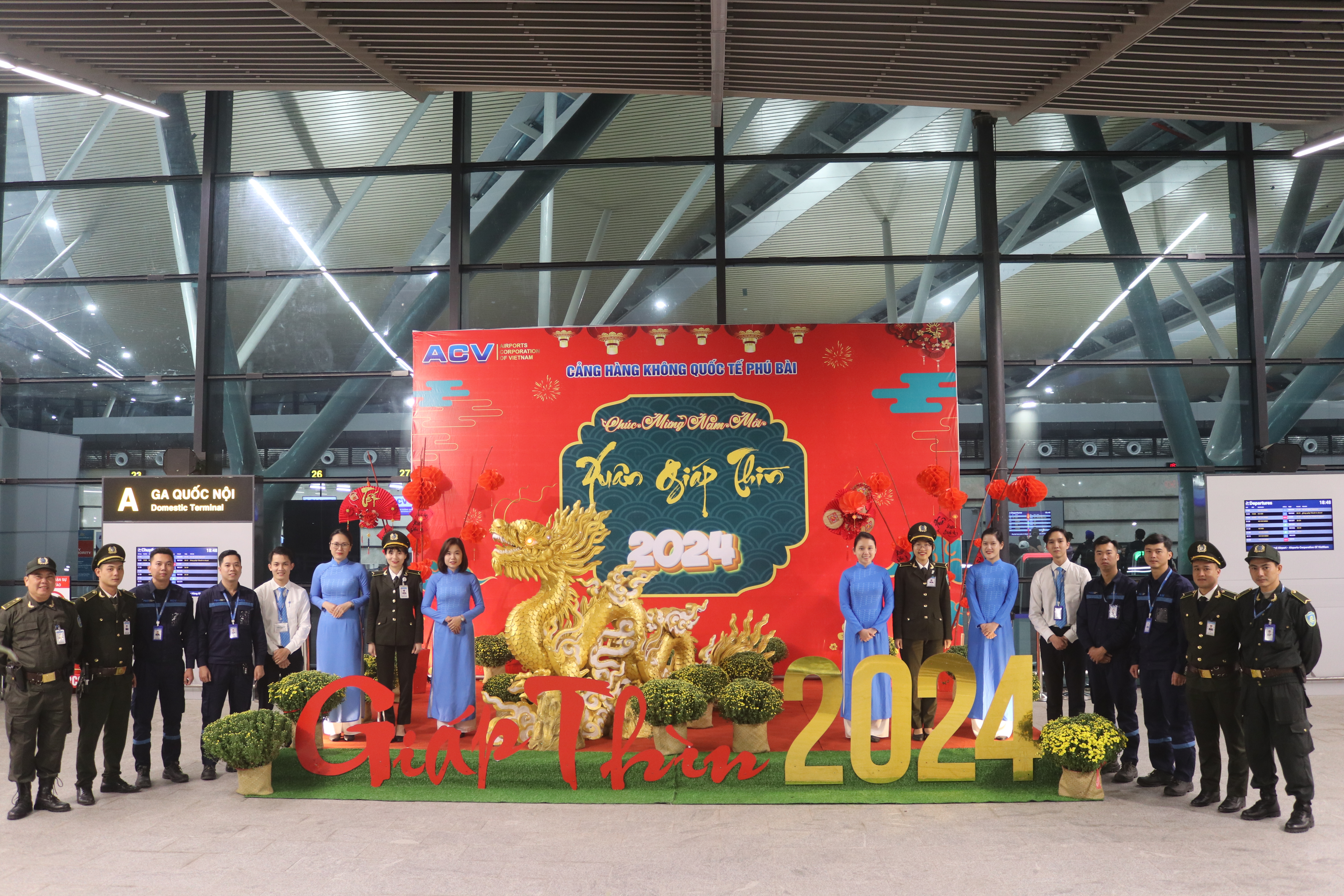 Hòa chung không khí kỷ niệm 94 năm Ngày thành lập Đảng Cộng sản Việt Nam và chào mừng Xuân Giáp Thìn, Cảng hàng không quốc tế Phú Bài đã đã triển khai đồng loạt các hoạt động như: Tổ chức thay mới các cụm pa nô, băng rôn, khẩu hiệu tuyên truyền trang trí cổ động trực quan cùng với trang trí đón tết Giáp Thìn.