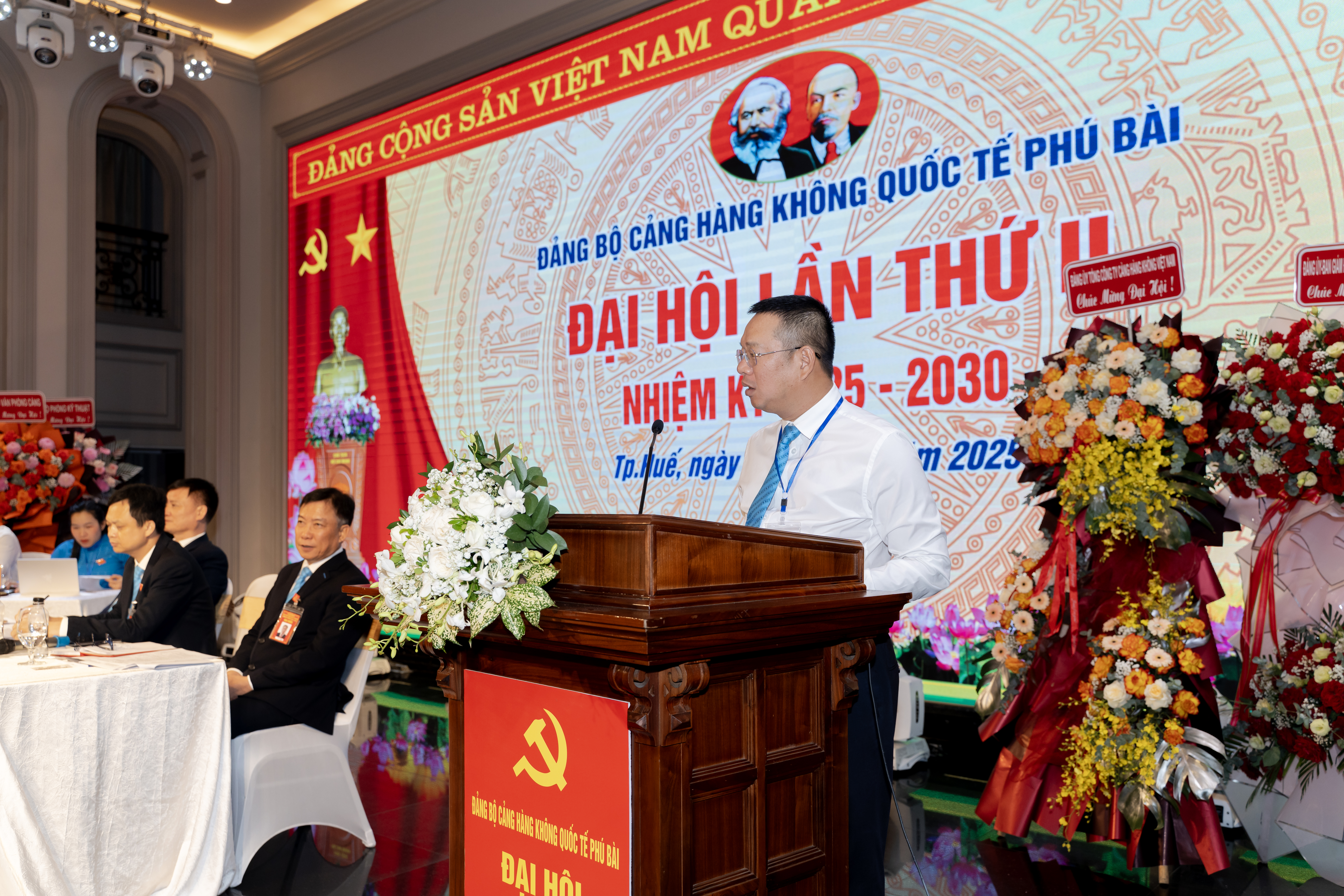 Ngày 12/6/2025, Đảng bộ Cảng hàng không quốc tế Phú Bài (Cảng HKQT Phú Bài) đã tổ chức thành công Đại hội lần thứ II, nhiệm kỳ 2025-2030 với Chủ đề “Tăng cường xây dựng, chỉnh đốn Đảng trong sạch, vững mạnh; khơi dậy ý chí, quyết tâm phát triển; phát huy đoàn kết, dân chủ; đẩy mạnh áp dụng khoa học công nghệ, chuyển đổi số và đổi mới sáng tạo; giữ vững an ninh, an toàn hàng không”. Đại hội rất vinh dự đón Đồng chí Trần Anh Vũ – Uỷ viên Ban Thường vụ Đảng ủy, Phó Tổng Giám đốc Tổng công ty Cảng hàng không Việt Nam về dự và chỉ đạo Đại hội.