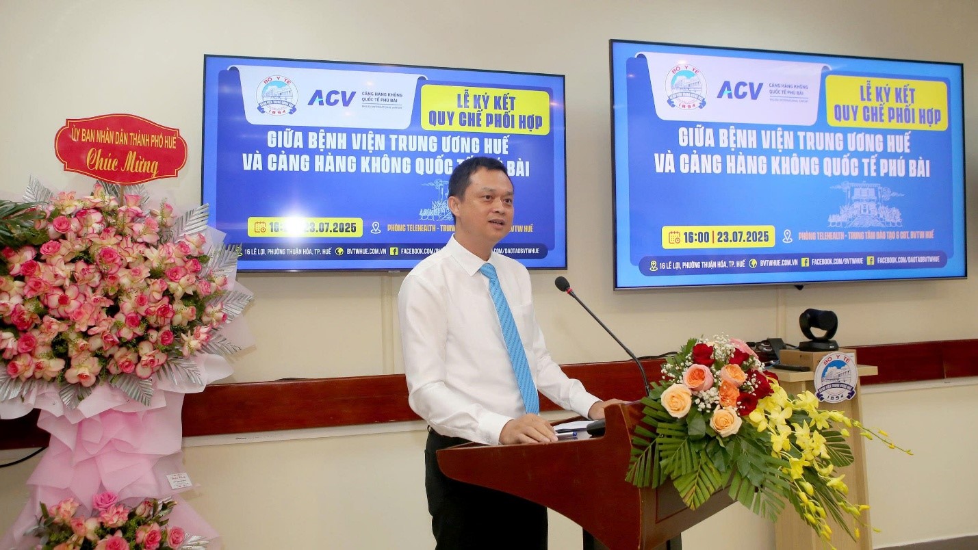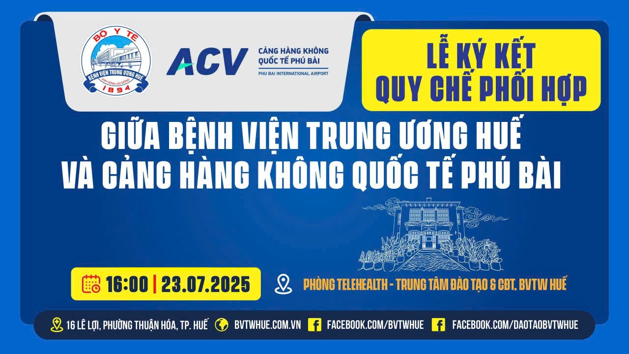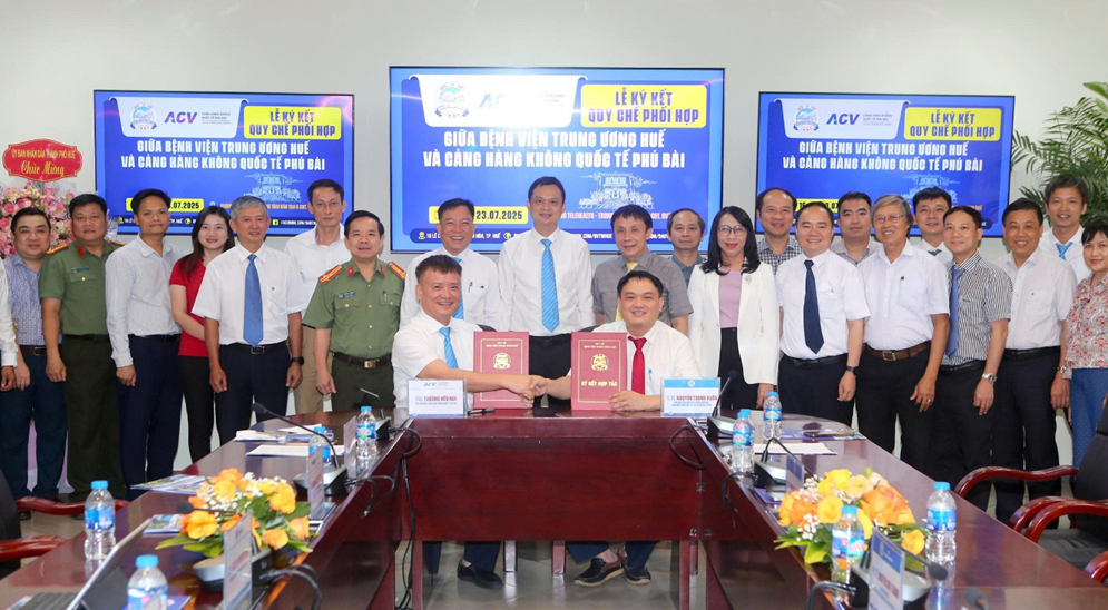 Ngày 23/7/2025 tại Bệnh viện Trung ương Huế đã tổ chức ký kết “Quy chế phối hợp” giữa Cảng hàng không quốc tế Phú Bài và Bệnh viện Trung ương Huế với nội dung cung cấp dịch vụ y tế cứu thương và phối hợp xử lý các tình huống khẩn nguy tại Cảng hàng không quốc tế Phú Bài”. Buổi lễ ký kết có sự chứng kiến của đại diện Cảng vụ hàng không tại Cảng HKQT Phú Bài, đại diện Công ty quản lý bay Việt Nam, Trưởng phòng PA08, Trưởng phòng PA03 và các đơn vị hoạt động khai thác tại Cảng hàng không quốc tế Phú Bài.