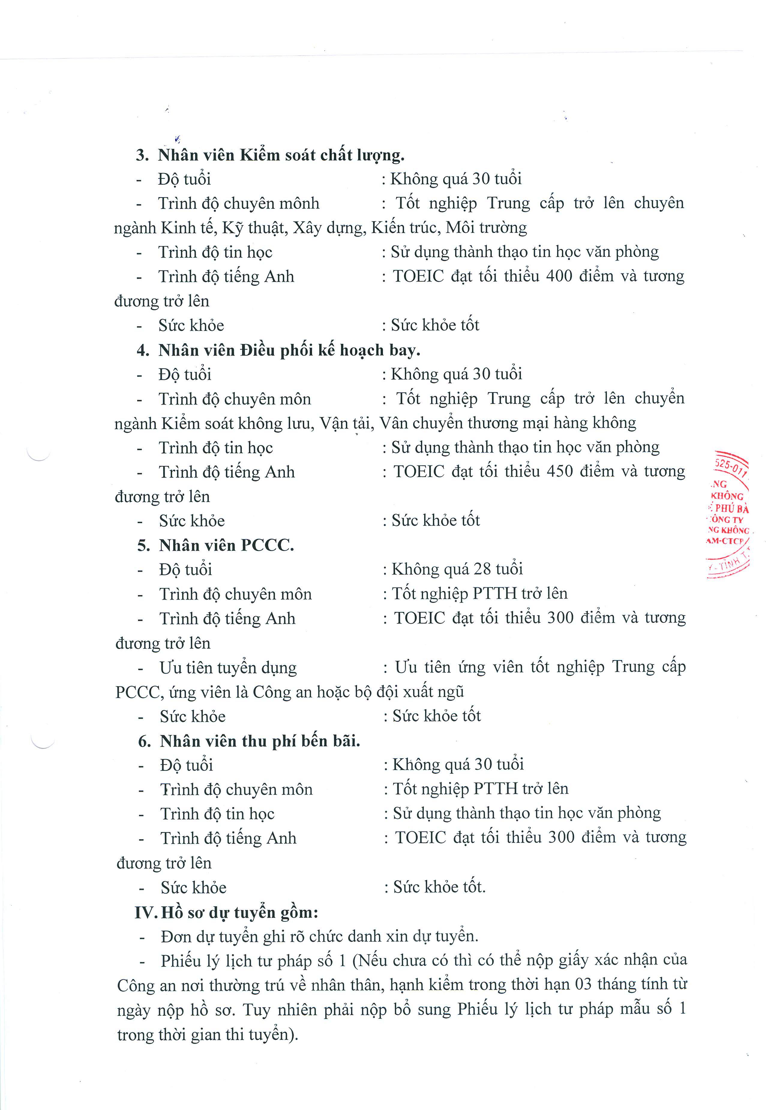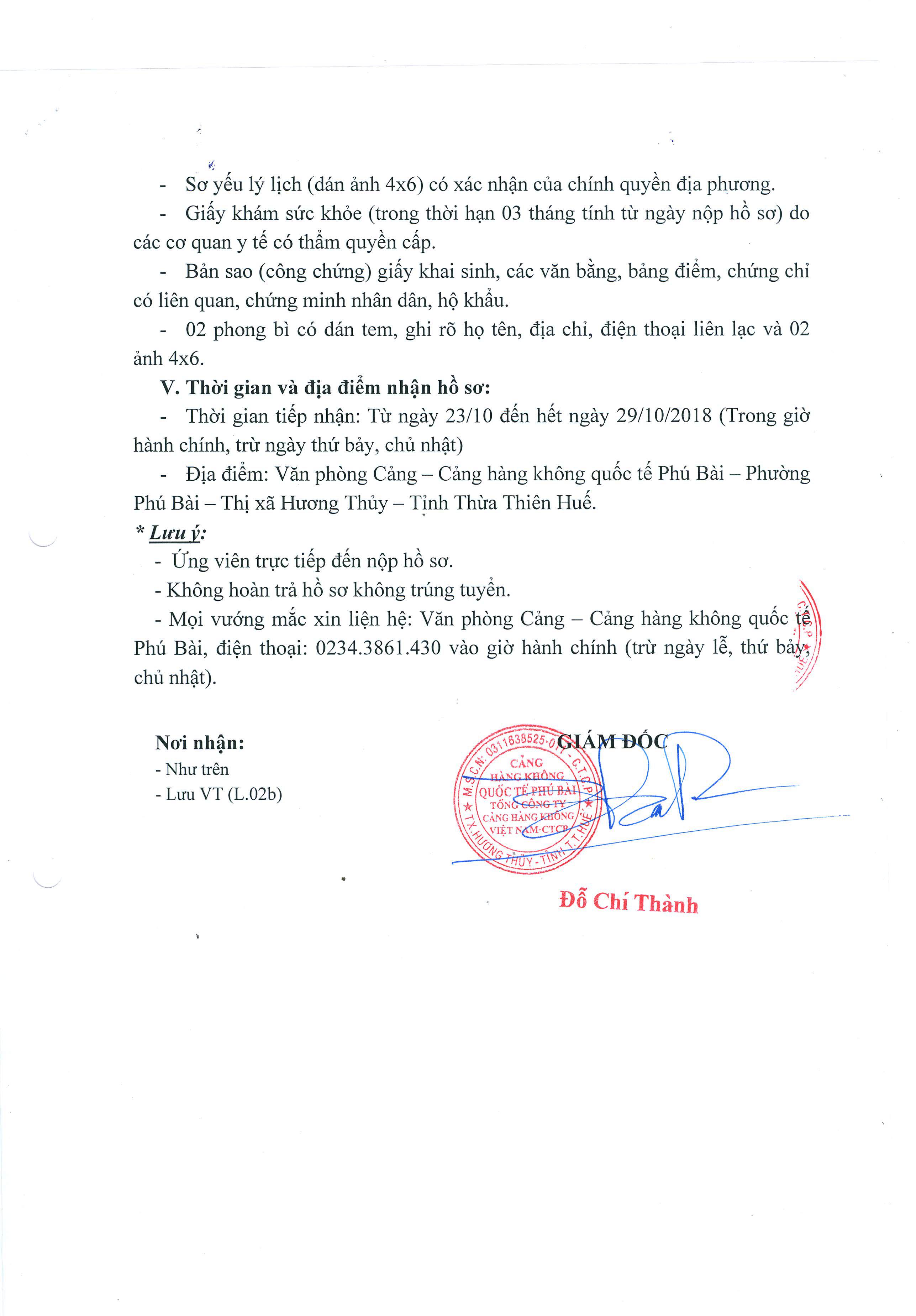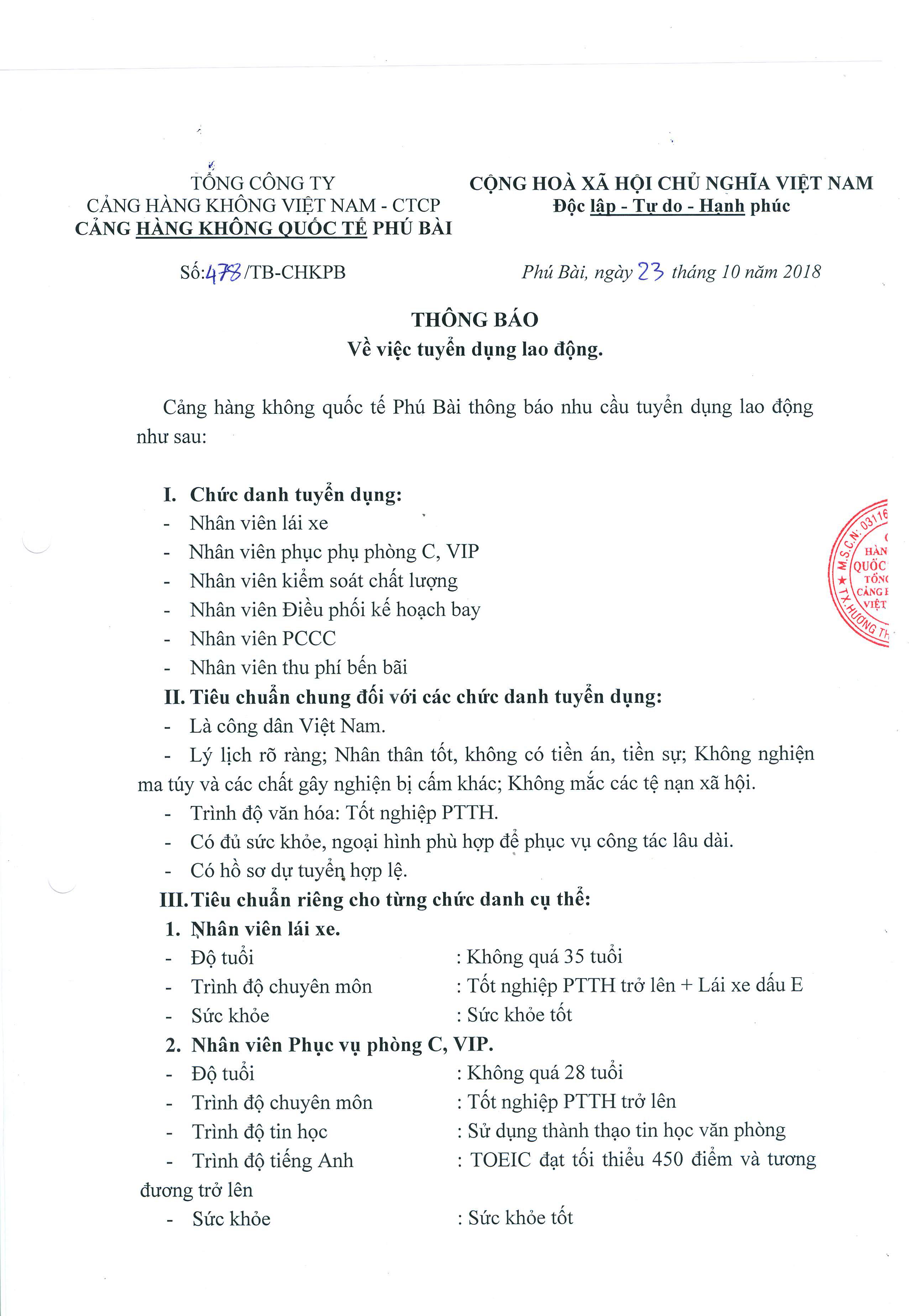 Cảng hàng không quốc tế Phú Bài thông báo thông tin tuyển dụng: