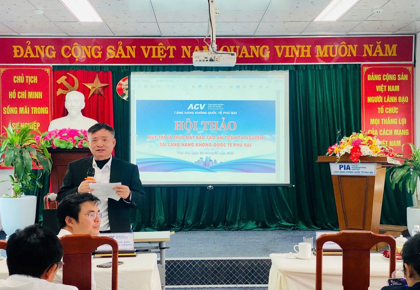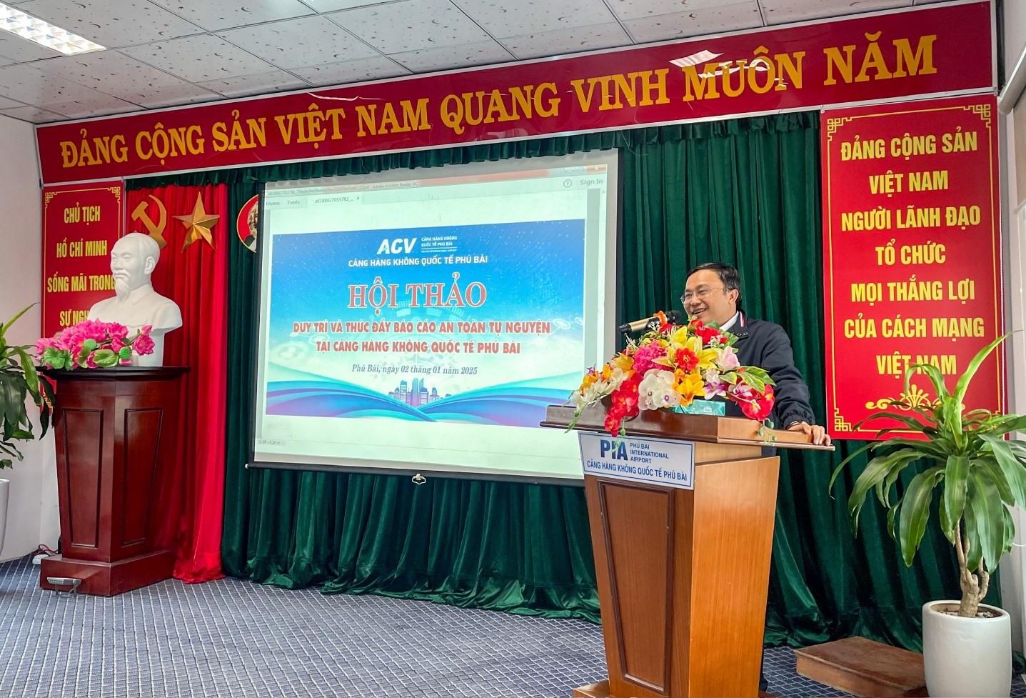 Nhằm nâng cao nhận thức về tầm quan trọng của báo cáo an toàn tự nguyện, khuyến khích sự tham gia của tất cả tổ chức và cá nhân làm việc tại Cảng, khi phát hiện những mối nguy về an toàn hàng không, thực hiện báo cáo ngay để giảm thiều rủi ro về công tác an toàn trong hoạt động hàng không dân dụng tại Cảng hàng không quốc tế Phú Bài. Ngày 02/01/2025 Cảng hàng không quốc tế Phú Bài chủ trì phối hợp Ban An toàn - Kiểm soát chất lượng - Tổng công ty Cảng hàng không Việt Nam- CTCP  tổ chức Hội thảo “Duy trì và thúc đẩy báo cáo an toàn tự nguyện tại Cảng hàng không quốc tế  Phú Bài”.