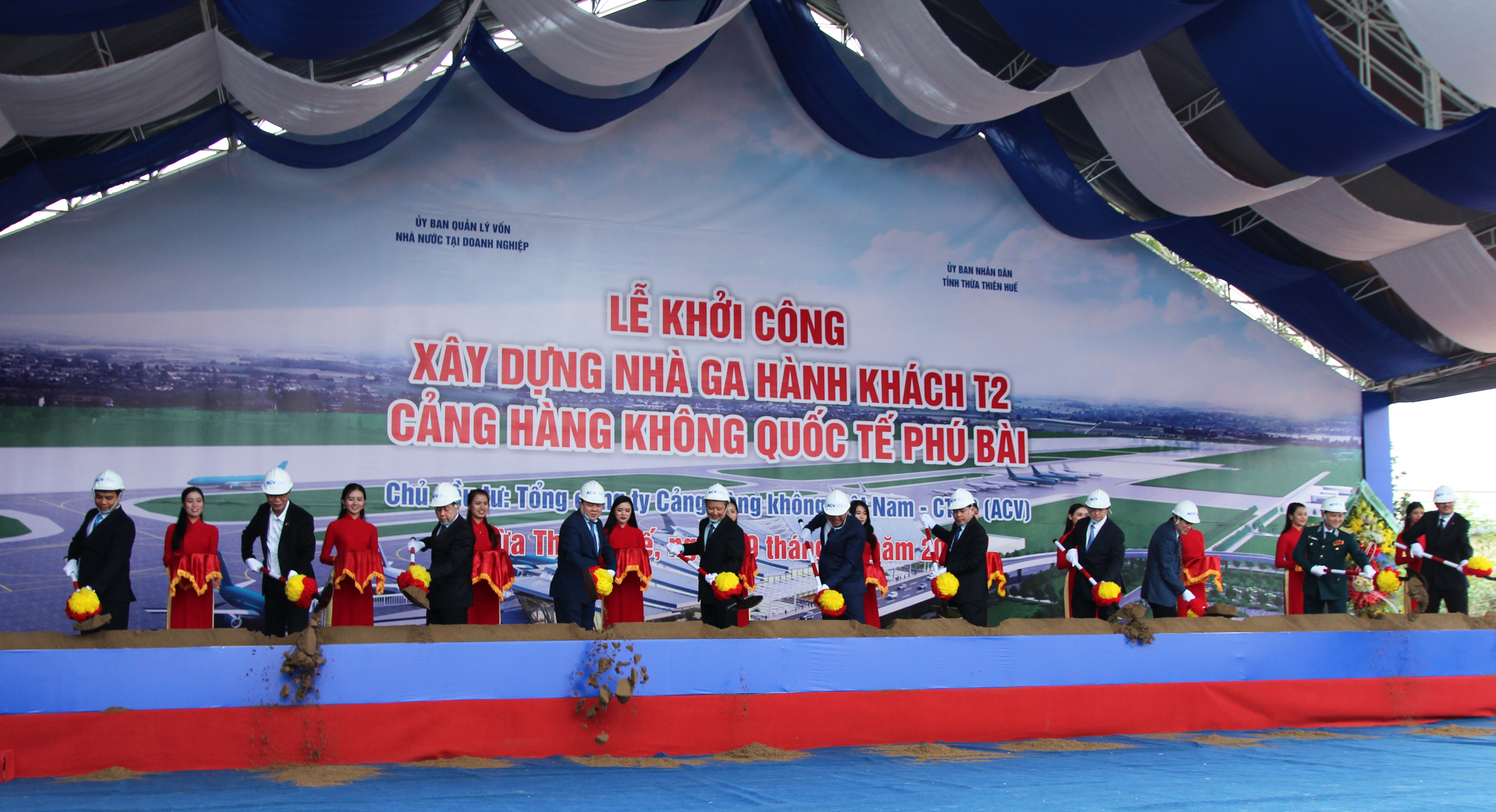 Ngày 29/12 vừa qua, tại thị xã Hương Thủy, Thừa Thiên - Huế, Tổng công ty Cảng hàng không Việt Nam phối hợp với Ủy ban nhân dân tỉnh Thừa Thiên - Huế tổ chức lễ khởi công xây dựng Nhà ga hành khách T2 Cảng hàng không quốc tế Phú Bài.