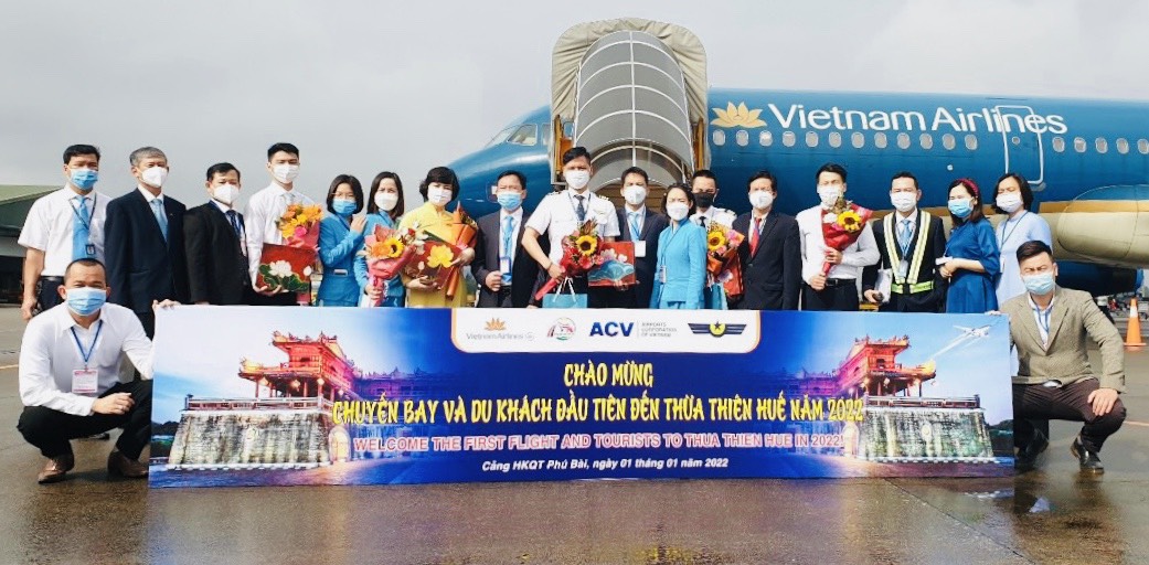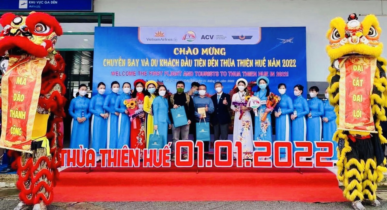 Sáng ngày 01.01.2022, chào đón năm mới Tết dương lịch và mừng Xuân Nhâm Dần sắp đến; đồng thời thể hiện tinh thần mến khách, thân thiện của người dân vùng đất Cố Đô và nỗ lực khắc phục khó khăn chung do tác động của dịch COVID-19 nhằm từng bước phục hồi ngành du lịch theo hướng “Thích ứng an toàn, linh hoạt, kiểm soát hiệu quả dịch COVID-19”; được sự đồng ý của Ủy ban Nhân dân tỉnh, Cảng hàng không quốc tế Phú Bài đã phối hợp với Sở Du lịch Thừa Thiên Huế, Cảng vụ Miền Trung tại Phú Bài và Vietnam Airlines tổ chức sự kiện “Lễ đón chuyến bay và du khách đầu tiên đến Thừa Thiên Huế năm 2022”.