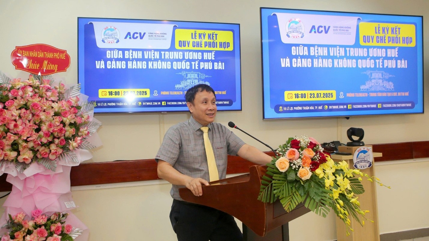 Ngày 23/7/2025 tại Bệnh viện Trung ương Huế đã tổ chức ký kết “Quy chế phối hợp” giữa Cảng hàng không quốc tế Phú Bài và Bệnh viện Trung ương Huế với nội dung cung cấp dịch vụ y tế cứu thương và phối hợp xử lý các tình huống khẩn nguy tại Cảng hàng không quốc tế Phú Bài”. Buổi lễ ký kết có sự chứng kiến của đại diện Cảng vụ hàng không tại Cảng HKQT Phú Bài, đại diện Công ty quản lý bay Việt Nam, Trưởng phòng PA08, Trưởng phòng PA03 và các đơn vị hoạt động khai thác tại Cảng hàng không quốc tế Phú Bài.