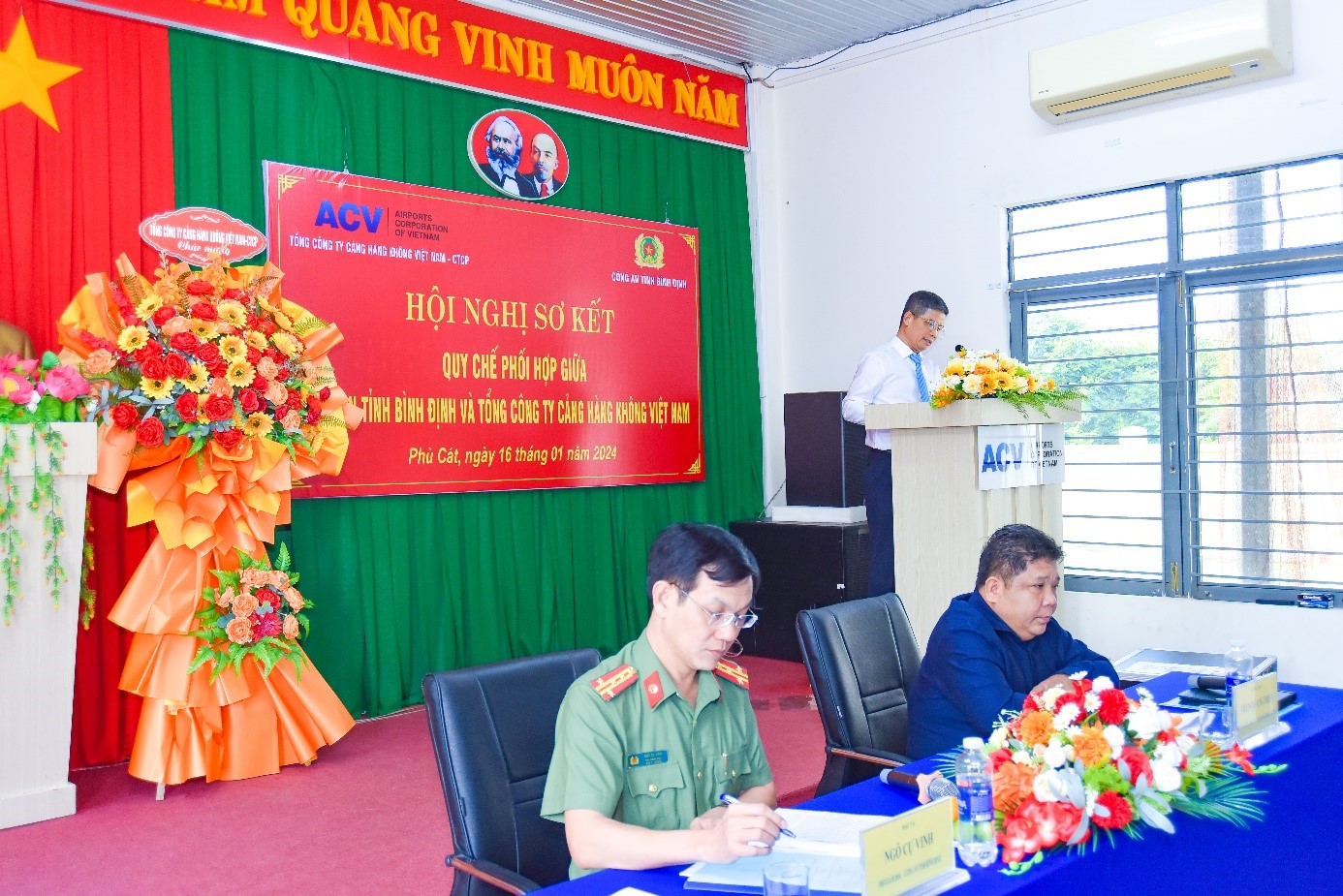 Đồng chủ trì hội nghị có Đại tá Ngô Cự Vinh – Phó Giám đốc Công an tỉnh Bình Định và ông Trần Quang Hiệu – Trưởng ban An ninh, Tổng công ty Cảng hàng không Việt Nam – CTCP. Tham dự hội nghị có lãnh đạo Cảng hàng không Phù Cát, đại diện lãnh đạo các phòng nghiệp vụ thuộc Công an tỉnh Bình Định, lãnh đạo Công an các huyện Phù Cát, Tây Sơn và Thị xã An Nhơn, đại diện Cảng vụ hàng không miền Trung tại Phù Cát và các đơn vị đang hoạt động tại Cảng hàng không Phù Cát.