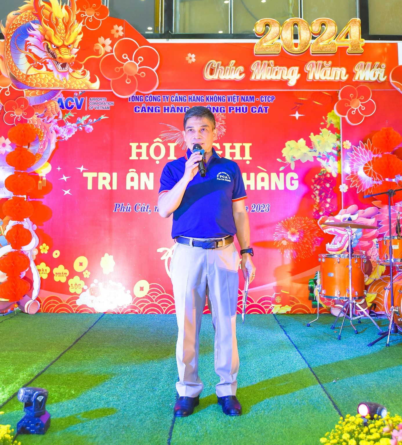 Cùng ngày, Cảng hàng không Phù Cát cũng đã tổ chức Hội nghị "Tri ân khách hàng". Phát biểu khai mạc, Ông Nguyễn Hoàng Anh-Bí thư Đảng ủy, Giám đốc Cảng hàng không Phù Cát đã gửi lời tri ân đến tất cả các đơn vị đối tác, cơ quan, ban ngành, các đơn vị hiệp đồng trong suốt thời gian qua đã tin tưởng, đồng hành, chia sẻ cơ hội, hợp tác kinh doanh và phối hợp thực hiện các nhiệm vụ có hiệu quả về mọi mặt. Đồng thời gửi lời cảm ơn, khích lệ đến toàn thể cán bộ, công nhân viên của Cảng, với hy vọng năm 2024 sẽ tiếp tục đoàn kết, cố gắng phấn đấu hơn nữa để hoàn thành nhiệm vụ sản xuất kinh doanh đã được Tổng công ty giao.