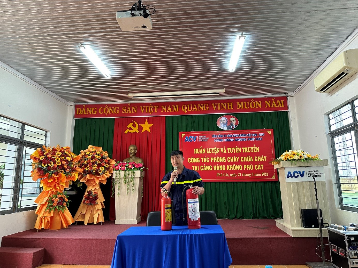 Ngày 21/03/2024, Cảng hàng không Phù Cát phối hợp với Phòng Cảnh sát PCCC-Công an tỉnh Bình Định tổ chức huấn luyện nghiệp vụ PCCC cho cán bộ, công nhân viên của đơn vị nhằm tuyên truyền, phổ biến giáo dục pháp luật về phòng cháy chữa cháy.