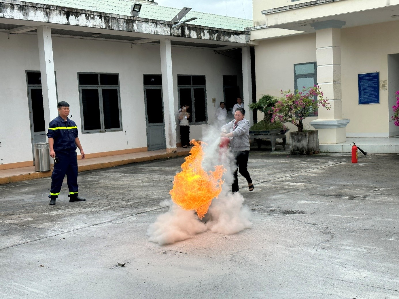 Cán bộ Phòng PCCC-CNCH hướng dẫn cách sử dụng, bảo quản bình chữa cháy