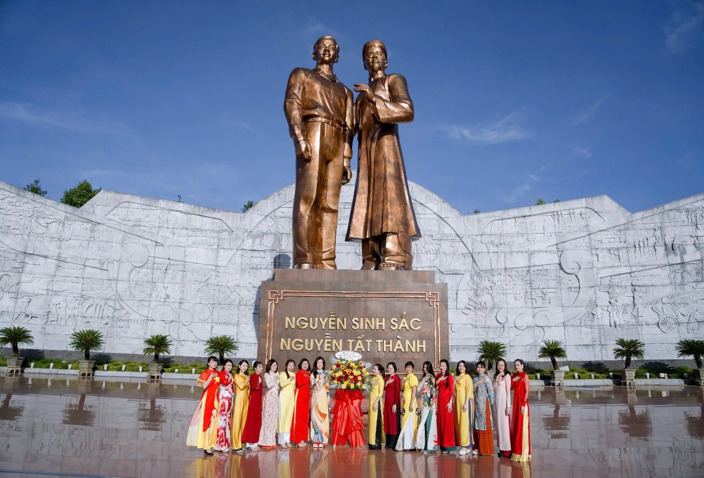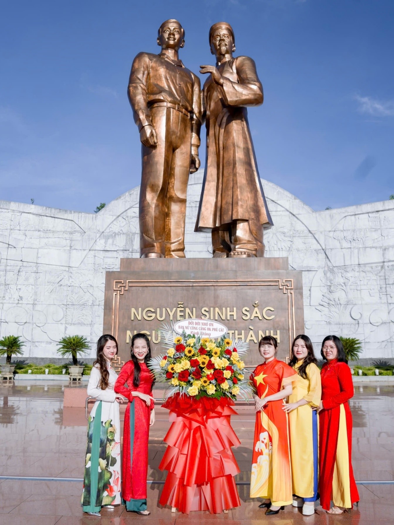 Tập thể nữ CB-CNV Cảng hàng không Phù Cát dâng hoa tại Tượng đài Nguyễn Sinh Sắc - Nguyễn Tất Thành
