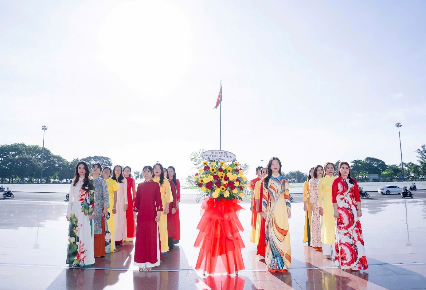 Hưởng ứng “Tuần lễ áo dài Việt Nam” hướng đến kỷ niệm 94 năm ngày Phụ nữ Việt Nam 20/10, sáng ngày 14/10/2024, tập thể nữ cán bộ, công nhân viên Cảng hàng không Phù Cát trong trang phục áo dài đã tổ chức dâng hoa tại tượng đài Nguyễn Sinh Sắc - Nguyễn Tất Thành.