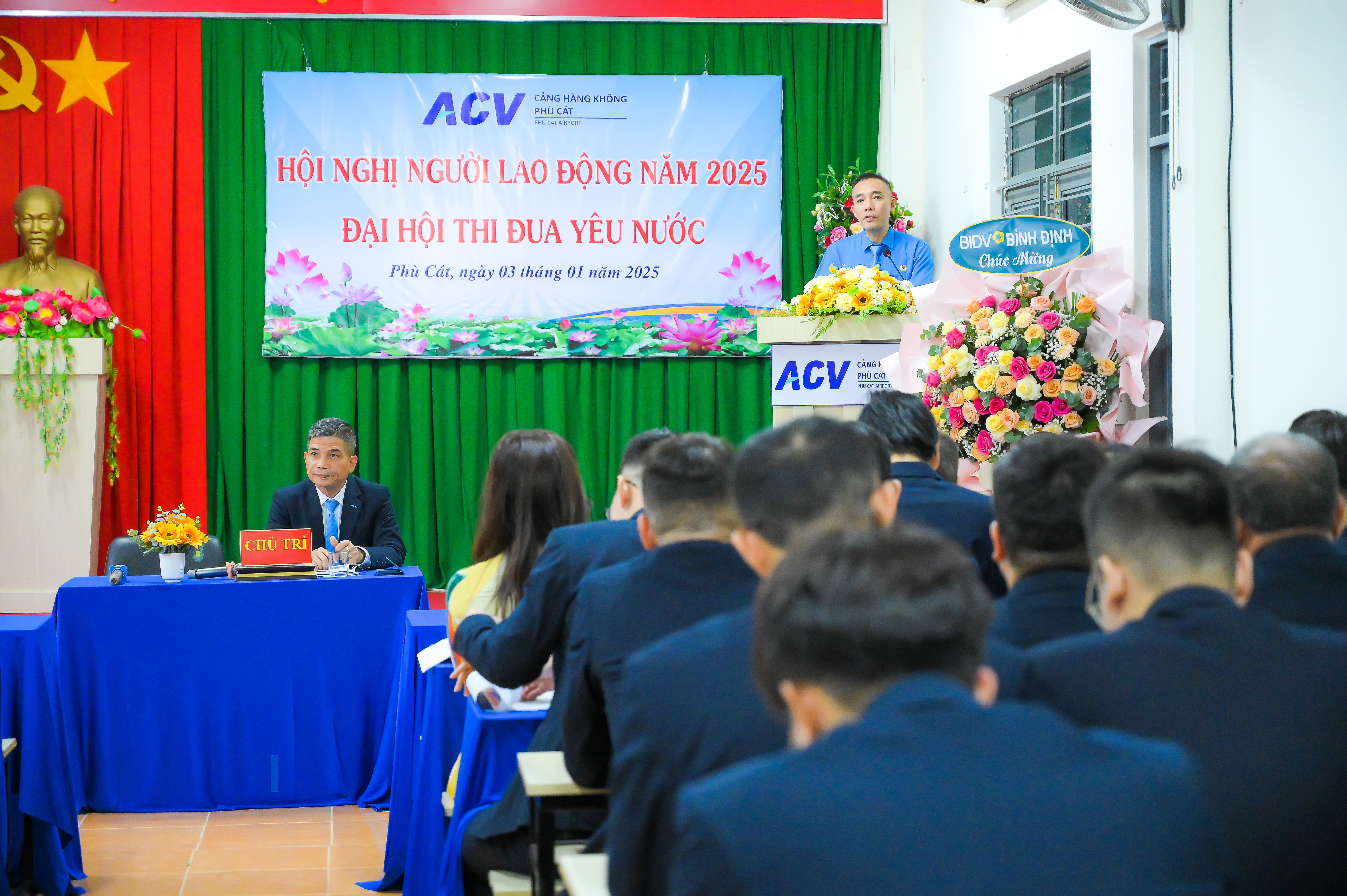 Thay mặt Ban Chấp hành Công đoàn cơ sở Cảng hàng không Phù Cát, Chủ tịch Công đoàn Ông Hồ Long Giang trình bày báo cáo tổng hợp kết quả hoạt động của công đoàn, đánh giá kết quả thực hiện Thỏa ước lao động tập thể và Nội quy lao động, quy định về An toàn vệ sinh lao động; đánh giá kết quả thực hiện các phong trào thi đua năm 2024 và phương hướng hoạt động của Công đoàn trong năm 2025.