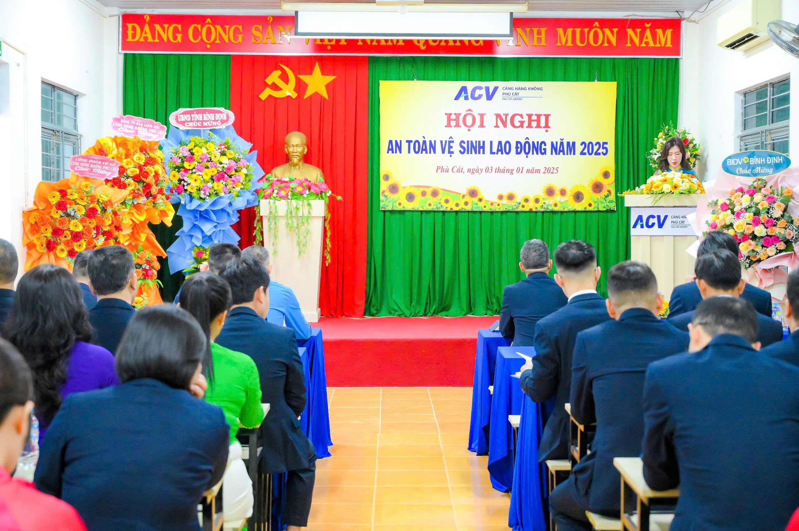 Ngày 03/01/2025, Cảng hàng không Phù Cát đã tổ chức Hội nghị Tổng kết An toàn, Vệ sinh Lao động (ATVSLĐ) năm 2024. Hội nghị là dịp đánh giá các kết quả đạt được trong năm 2024 và đề ra phương hướng hoạt động cho năm 2025, với sự tham gia của Ban Giám đốc, Công đoàn cơ sở, mạng lưới an toàn vệ sinh viên và đại biểu tiêu biểu từ các phòng trực thuộc.