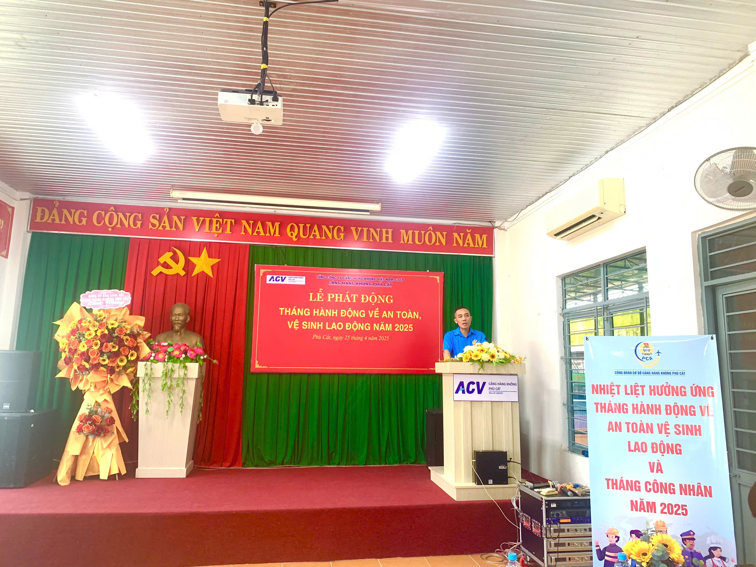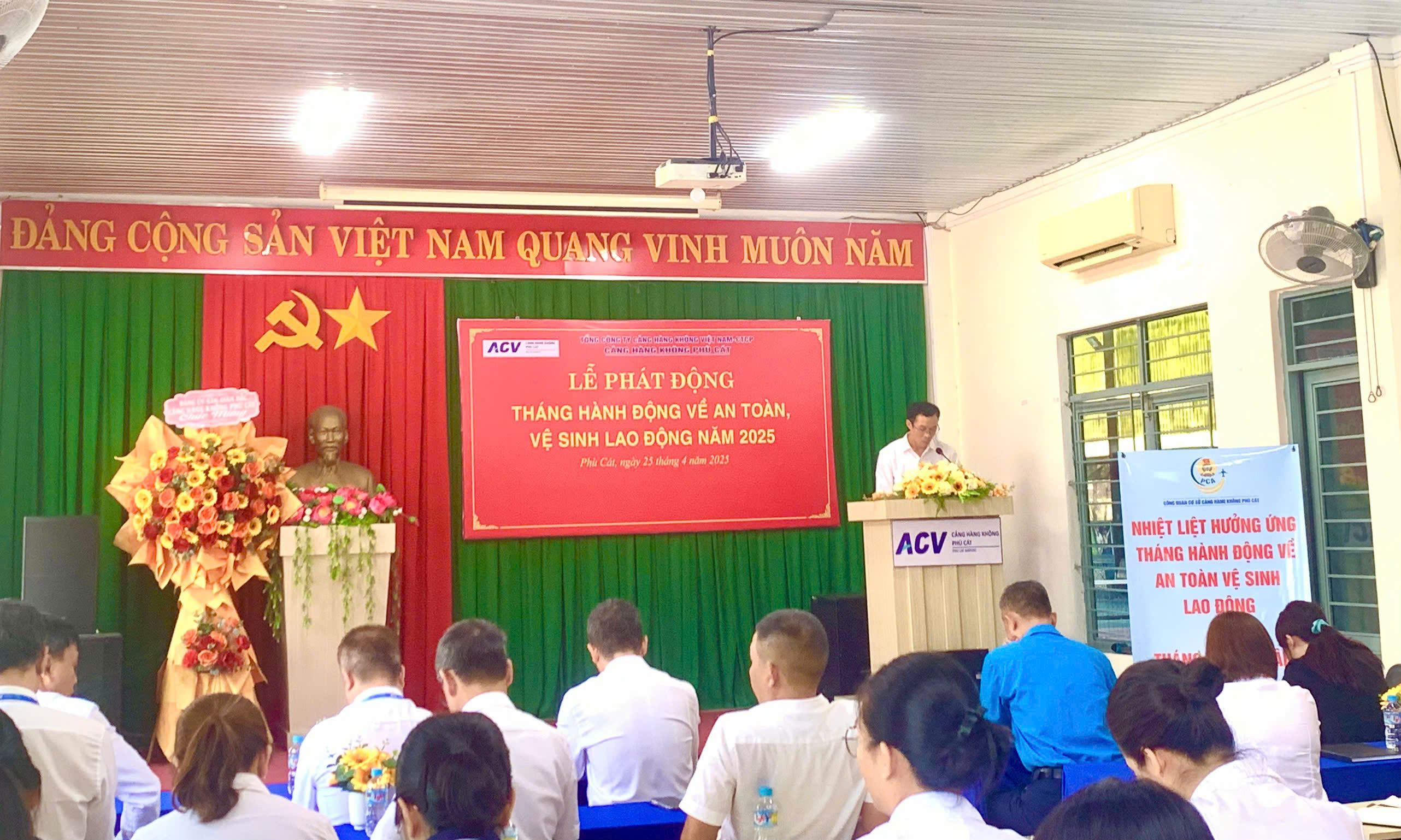 Sáng ngày 25/4/2025, Cảng hàng không Phù Cát long trọng tổ chức Lễ phát động Tháng hành động về An toàn, vệ sinh lao động năm 2025 với chủ đề: “Tăng cường đánh giá, nhận diện nguy cơ, rủi ro và chủ động triển khai các biện pháp bảo vệ an toàn, vệ sinh lao động tại nơi làm việc.”