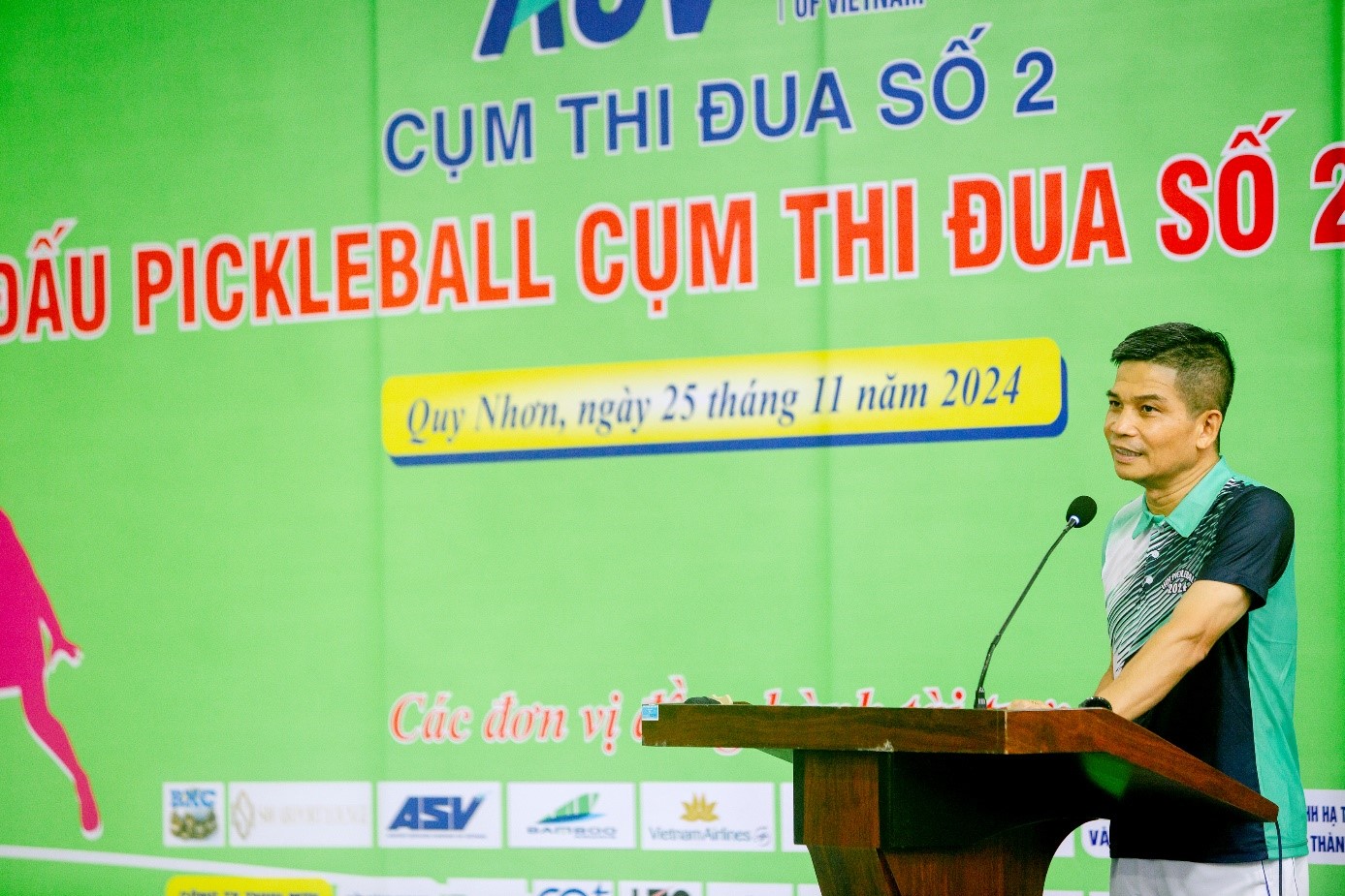 Ông Nguyễn Hoàng Anh - Giám đốc Cảng hàng không Phù Cát - Cụm trưởng Cụm thi đua số 2 phát biểu khai mạc giải đấu