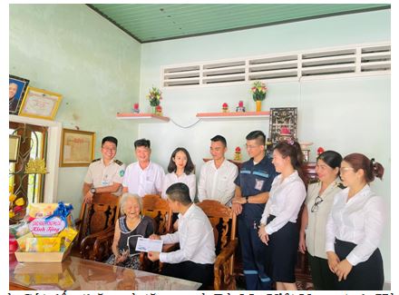 Tiếp đó, đoàn đã đến thăm và tặng quà Bà Mẹ Việt Nam Anh Hùng Nguyễn Thị Sen - Chánh Nhơn, Cát Nhơn, Phù Cát, Bình Định (102 tuổi); Bà Mẹ Việt Nam Anh Hùng Phùng Thị Cảnh - Thuận Phong, Cát Lâm, Phù Cát, Bình Định (95 tuổi); Thương binh Nguyễn Lúc - Bình Đức, Cát Tân, Phù Cát, Bình Định.