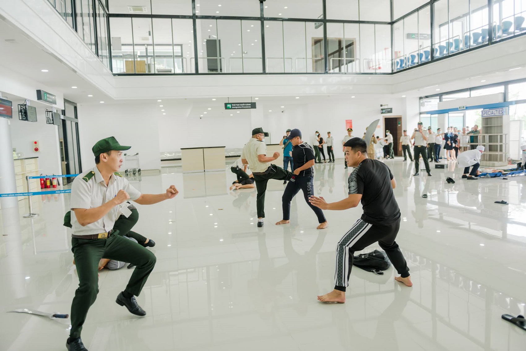 Nội dung diễn tập dựa trên tình huống: “ Có 05 hành khách và một số người đưa tiễn (đã sử dụng bia,rượu…) đến muộn, mặc dù đã được nhân viên hàng không và đại diện hãng giải thích rõ ràng nhưng các đối tượng vẫn rất hung hăng và có thái độ hành hung chống đối nhân viên hàng không.