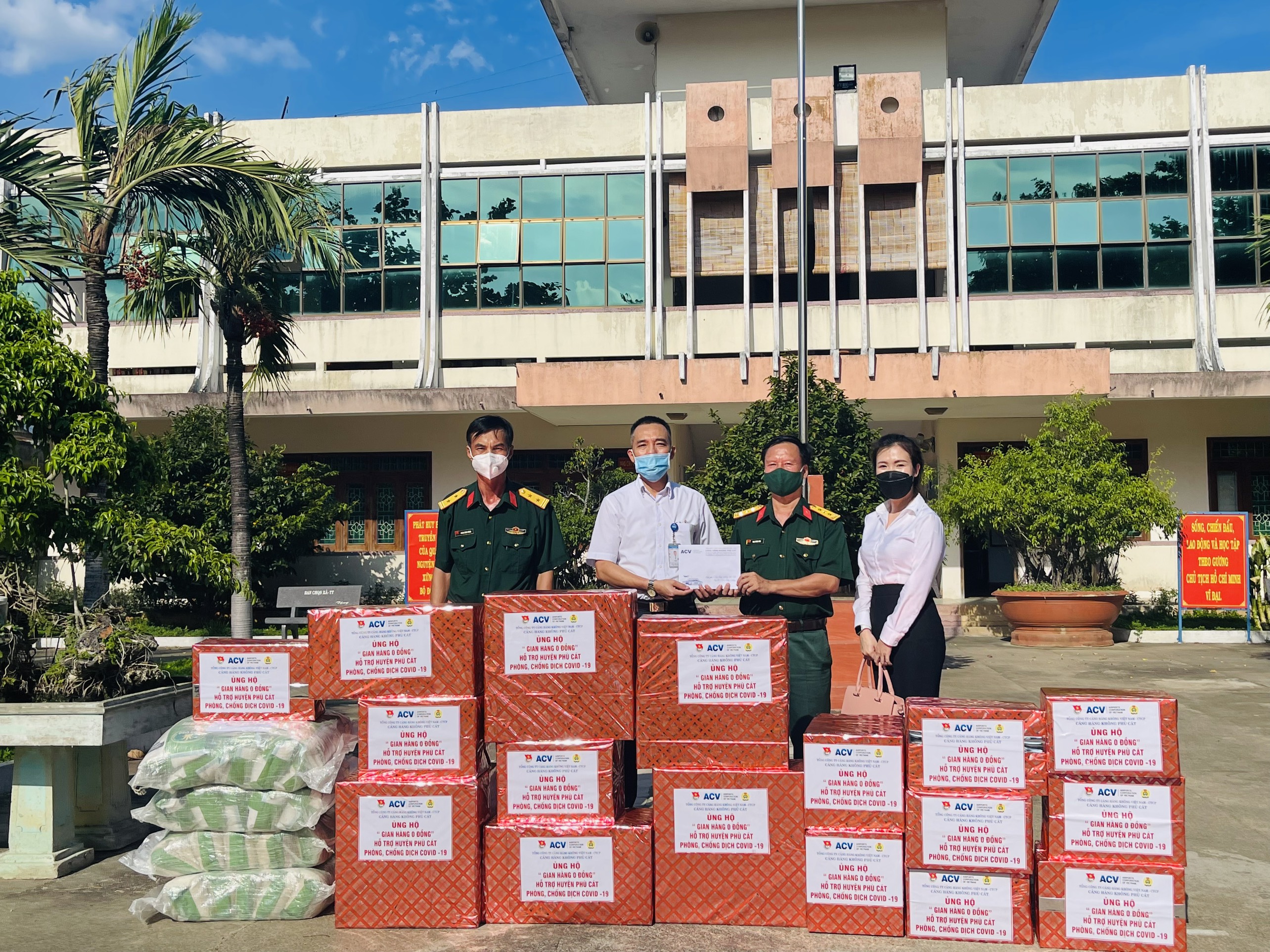Chào mừng kỷ niệm 76 năm Ngày Cách mạng Tháng Tám thành công (19/8/1945-19/8/2021), trước tình hình đời sống của bà con trên địa bàn huyện Phù Cát gặp nhiều khó khăn do ảnh hưởng của dịch bệnh Covid-19; Cảng hàng không Phù Cát là một trong những đơn vị đi đầu ủng hộ để tổ chức thực hiện “Gian hàng 0 đồng”, nhằm cung cấp kịp thời các loại nhu yếu phẩm thiết yếu để chia sẻ với những khó khăn của bà con Nhân dân xã Cát Tường và thị trấn Cát Tiến đang thực hiện giãn cách xã hội theo Chỉ thị số 16/CT-TTg của Thủ tướng Chính phủ (với tổng số tiền ủng hộ 20 triệu đồng).