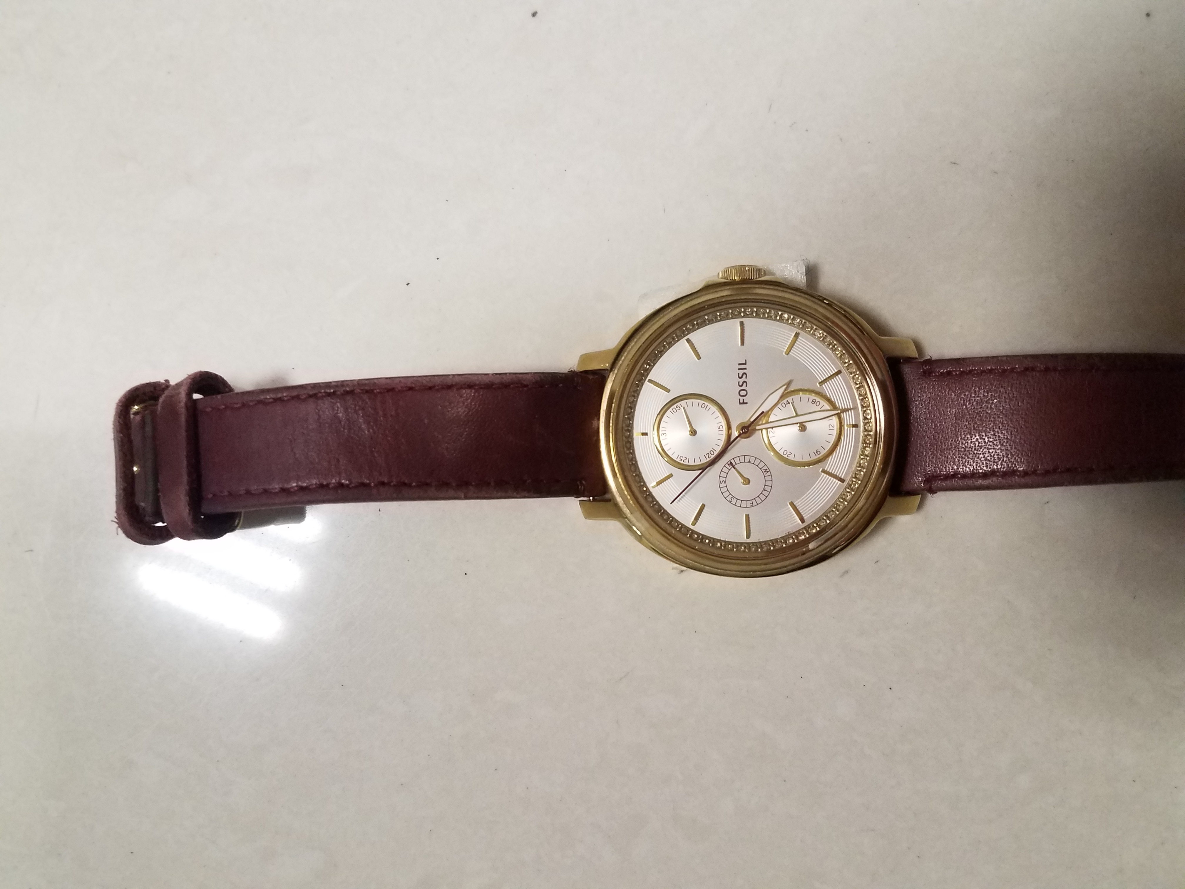 01 đồng hồ dây da màu đỏ hiệu Fossil, ngày 15/01/2023