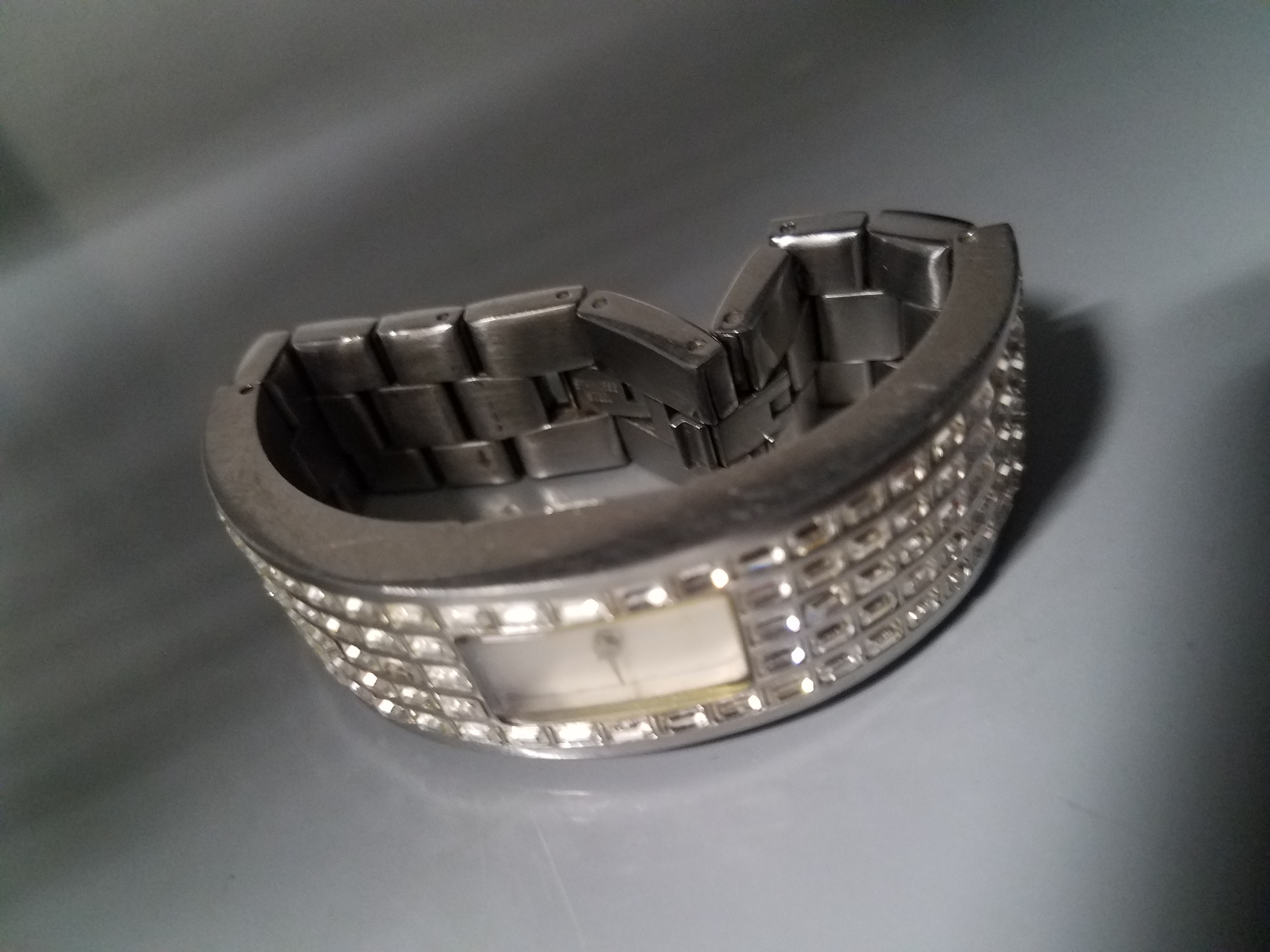 01 đồng hồ kim loại màu bạc (có đính đá), ngày 01/03//2023