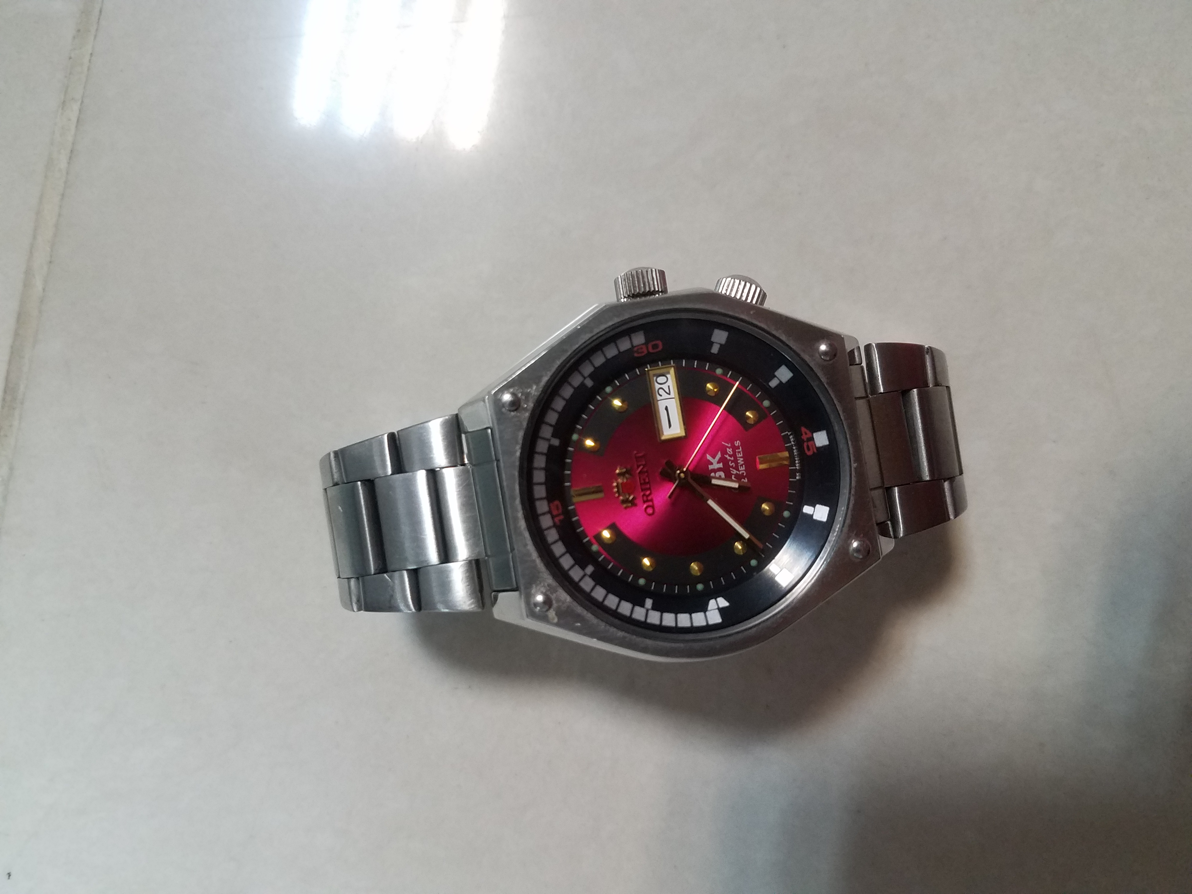 01 đồng hồ kim loại màu bạc hiệu Orient, ngày 26/06/202