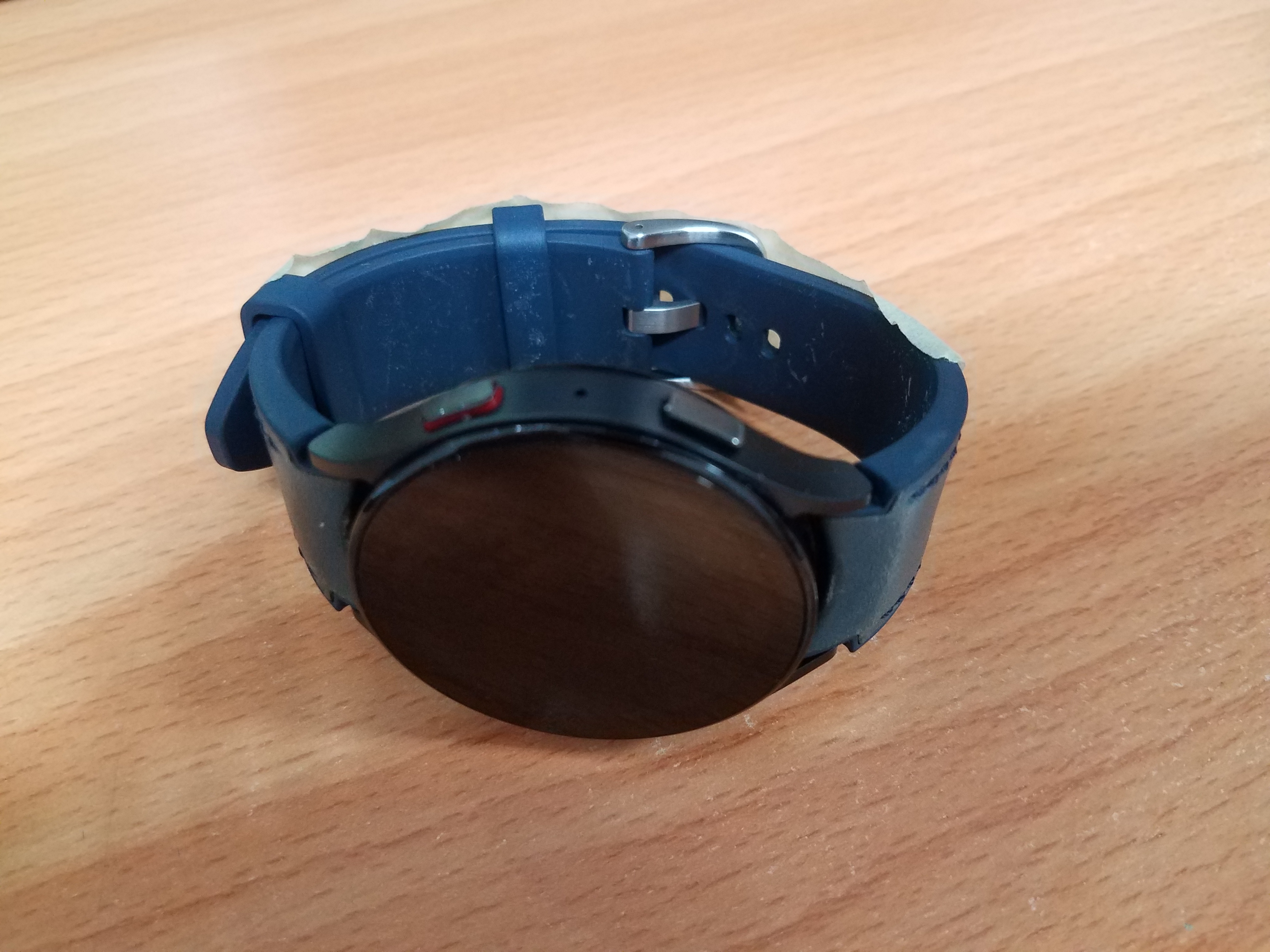 01 đồng hồ màu đen hiệu Samsung, dây màu xanh, ngày 07/04//2023