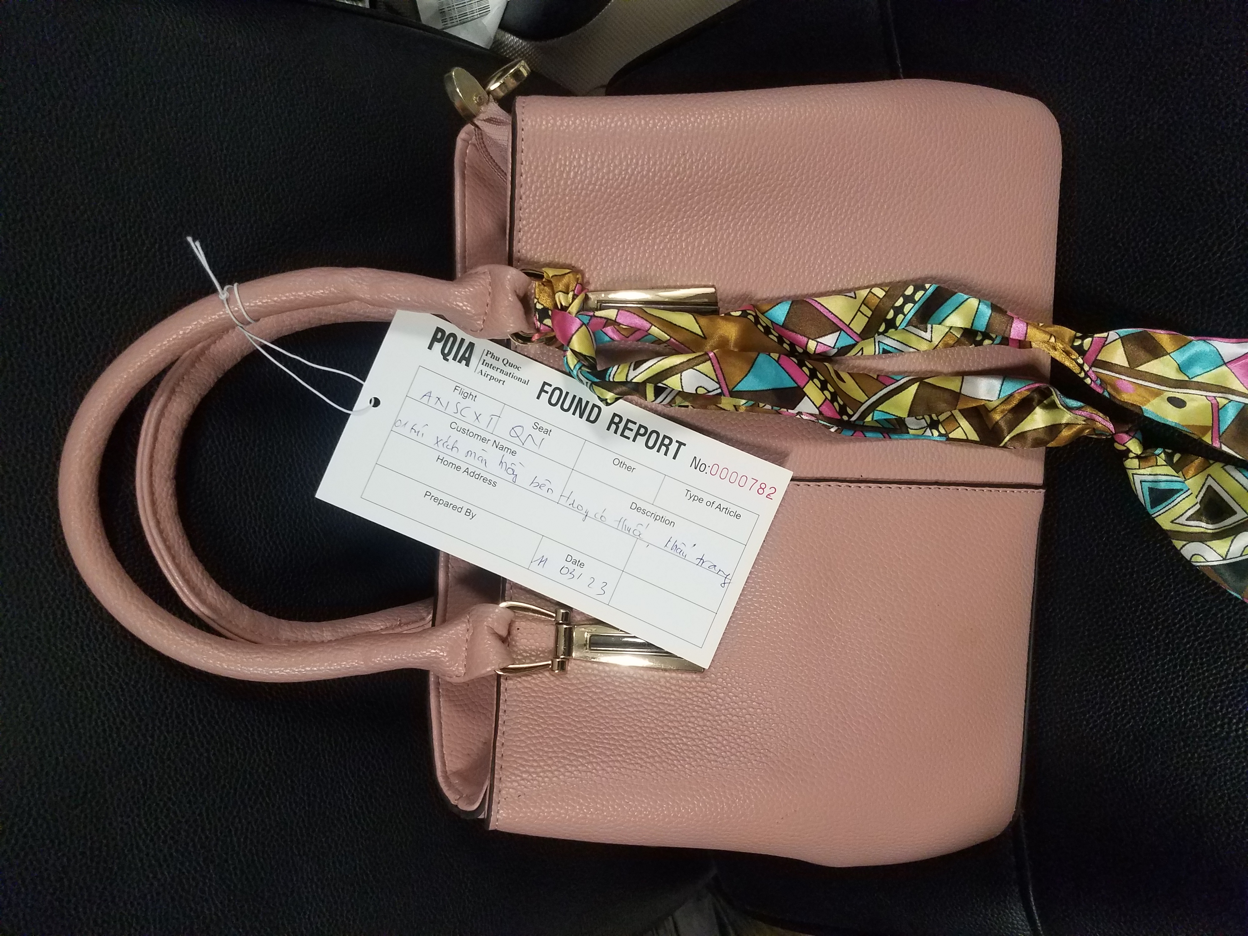 01 túi xách màu hồng, ngày 11/03//2023