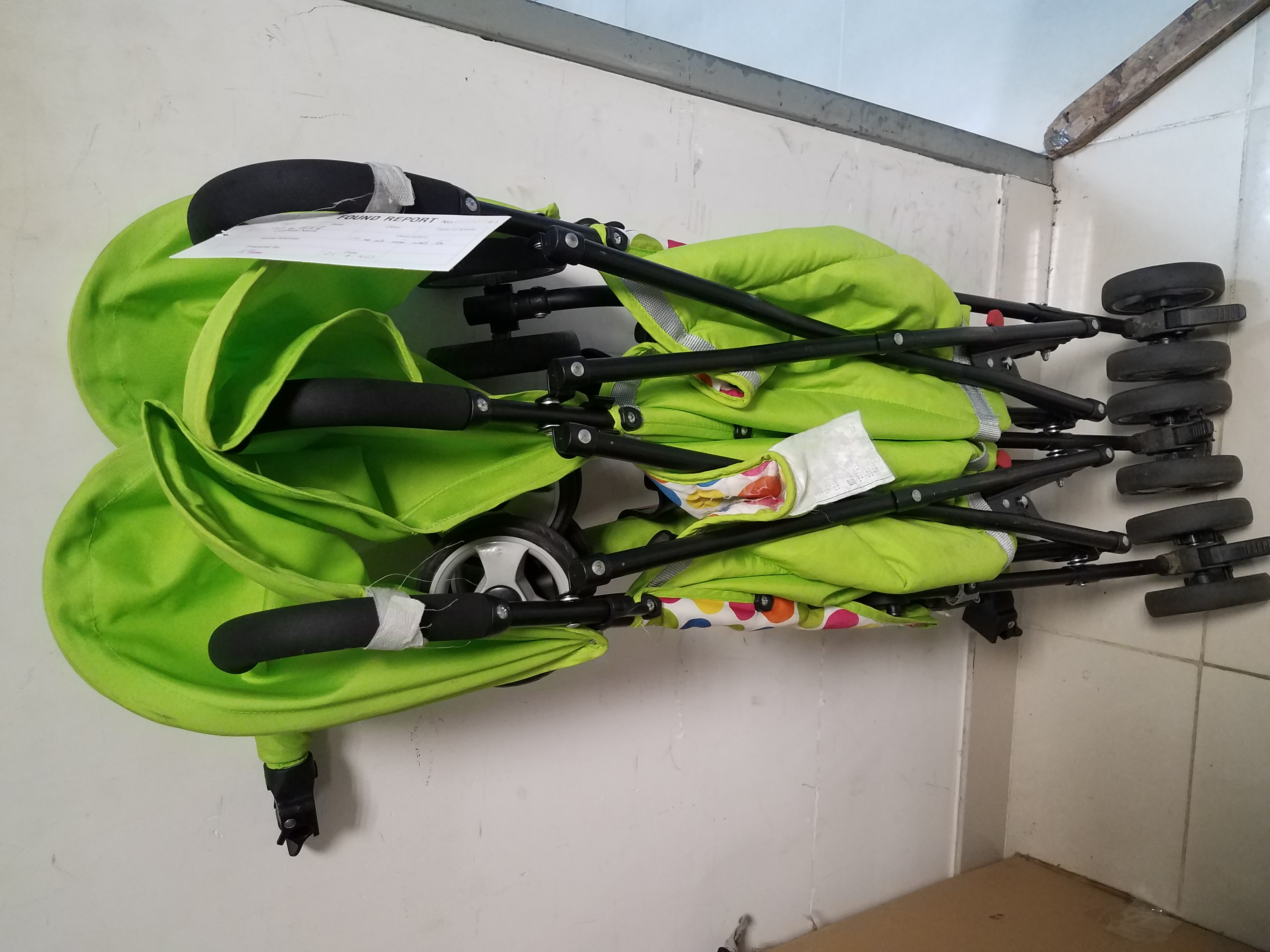 01 xe nôi màu xanh lá, được tìm thấy tại khu vực Phòng chờ cách ly quốc tế vào ngày 25/04//2023