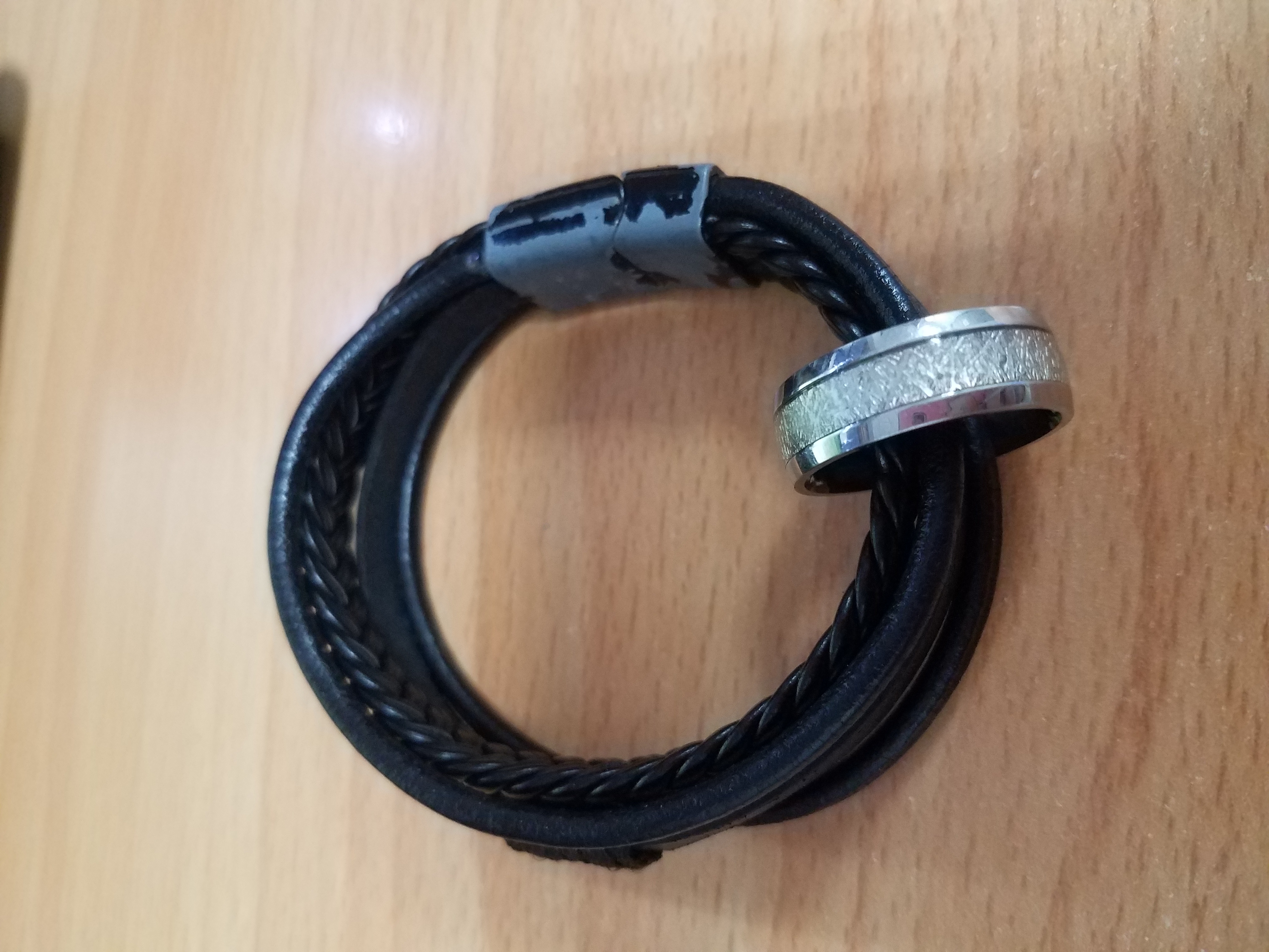 01 vòng tay bằng da màu đen + 01 nhẫn bằng kim loại màu bạc, khách quên ở khu vực An ninh soi chiếu hành lý xách tay quốc nội.