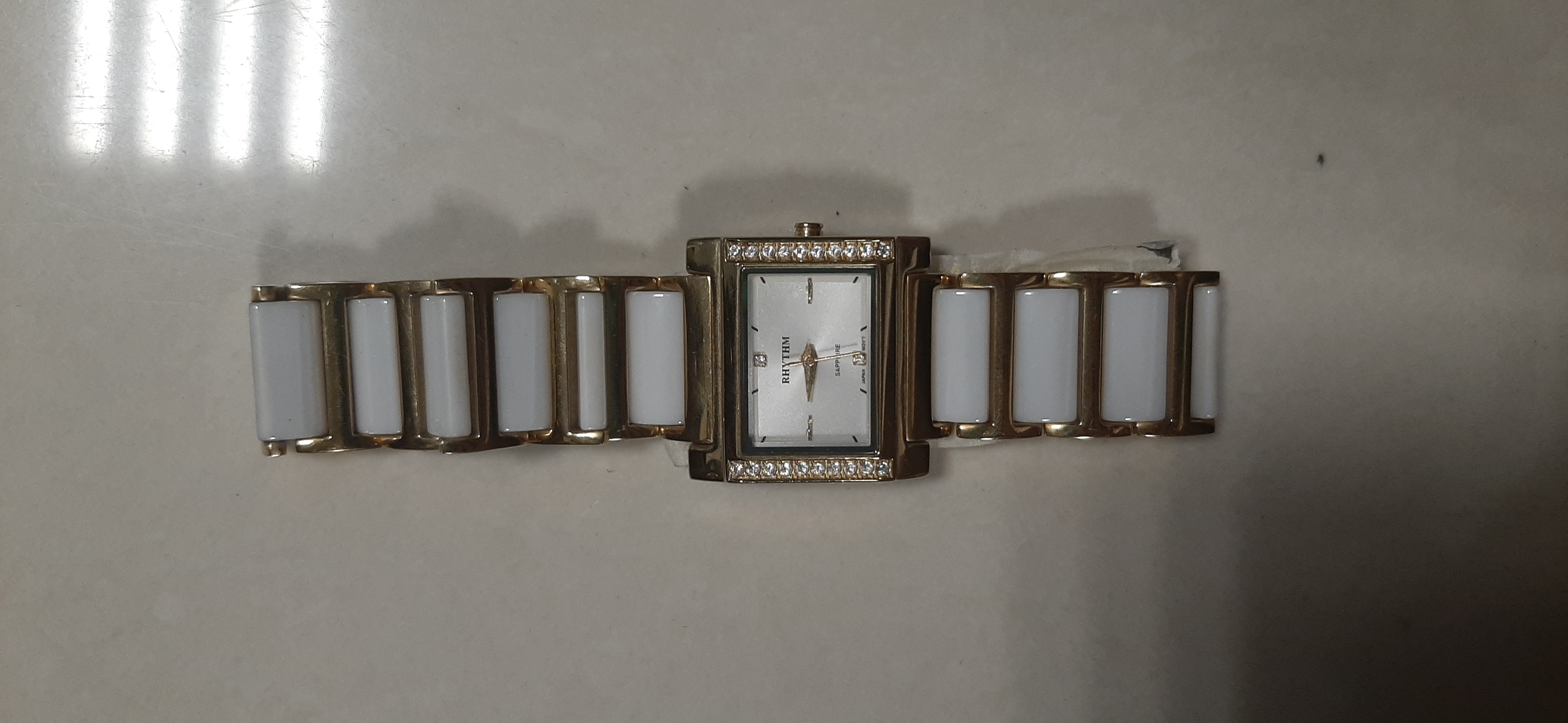 01 đồng hồ kim loại hiệu Rhythm màu trắng và vàng, khách quên ở An ninh soi chiếu hành lý xách tay quốc nội.