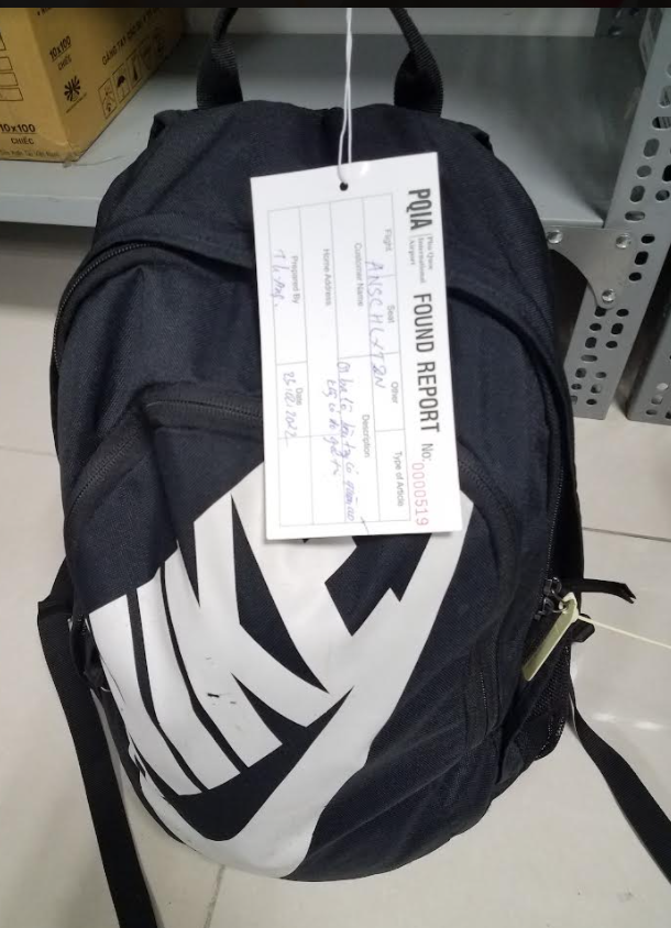 01 ba lô màu đen bên trong có quần áo, khách quên ngày 23/02/2022 ở khu vực An ninh soi chiếu hành lý xách tay quốc nội.