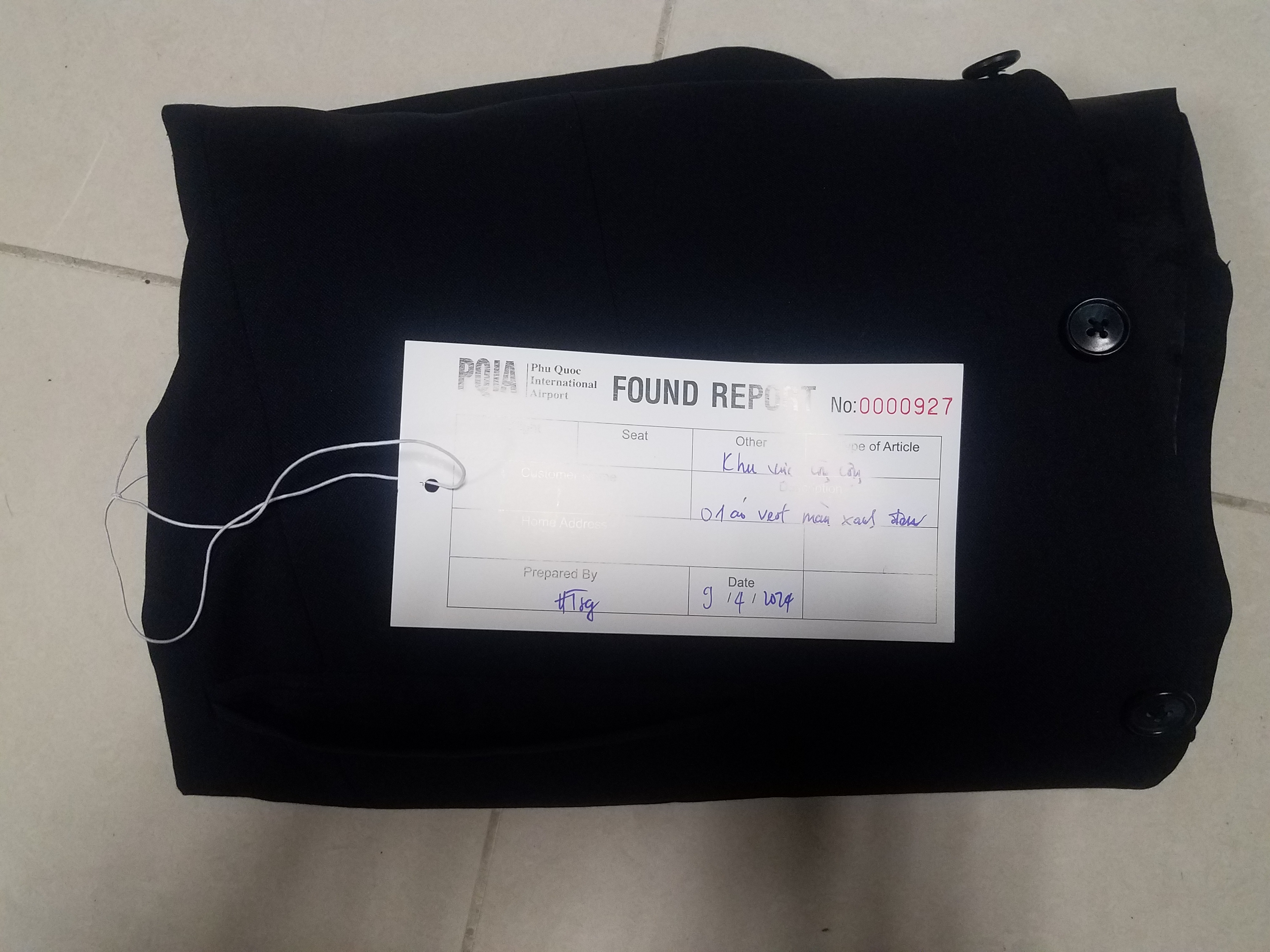 01 áo vest màu xanh đen, được tìm thấy vào ngày 09/04/2024, ở Khu vực công cộng