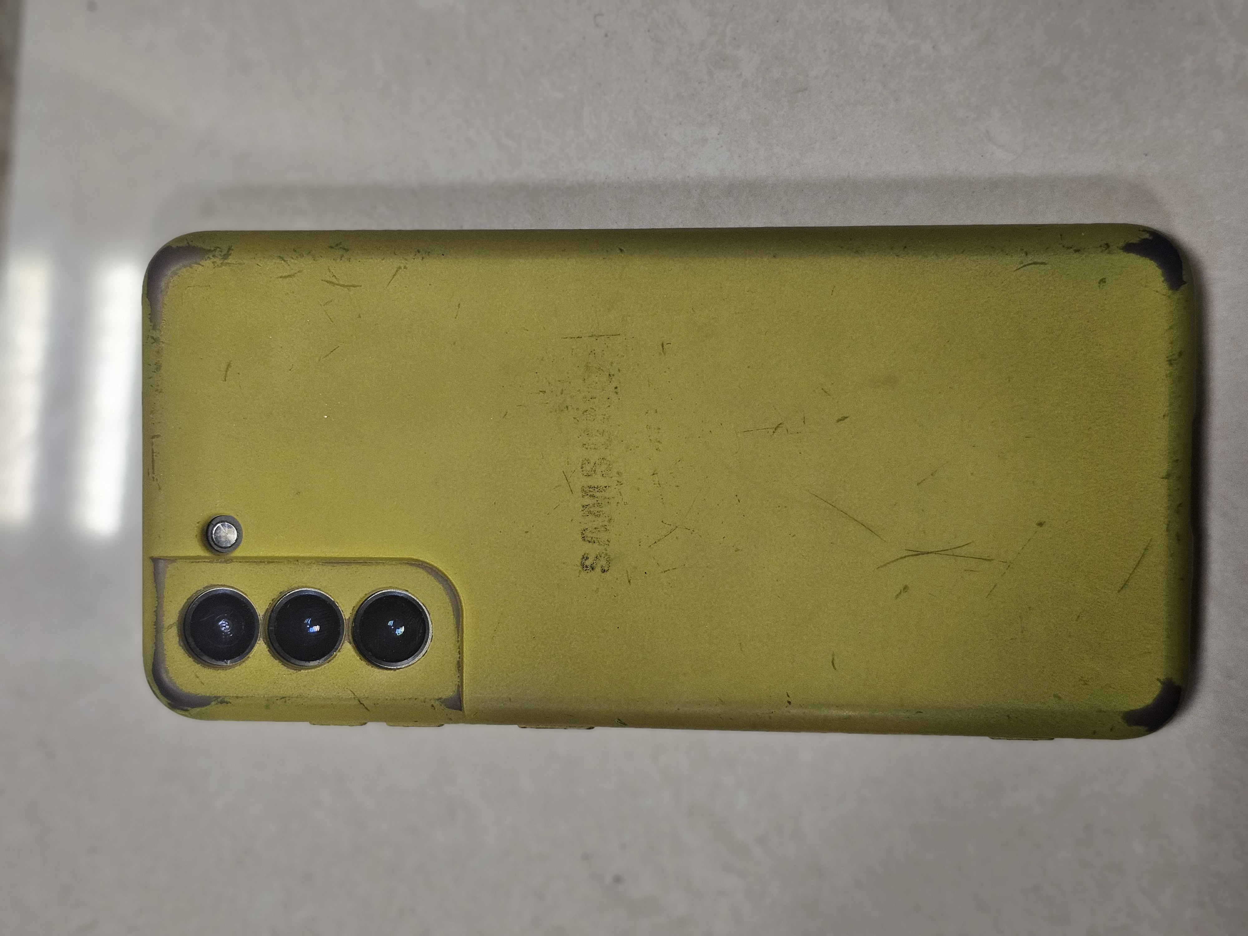 01 điện thoại Samsung màu xanh đen, ốp màu vàng, được tìm thấy vào ngày 04/01/2025
