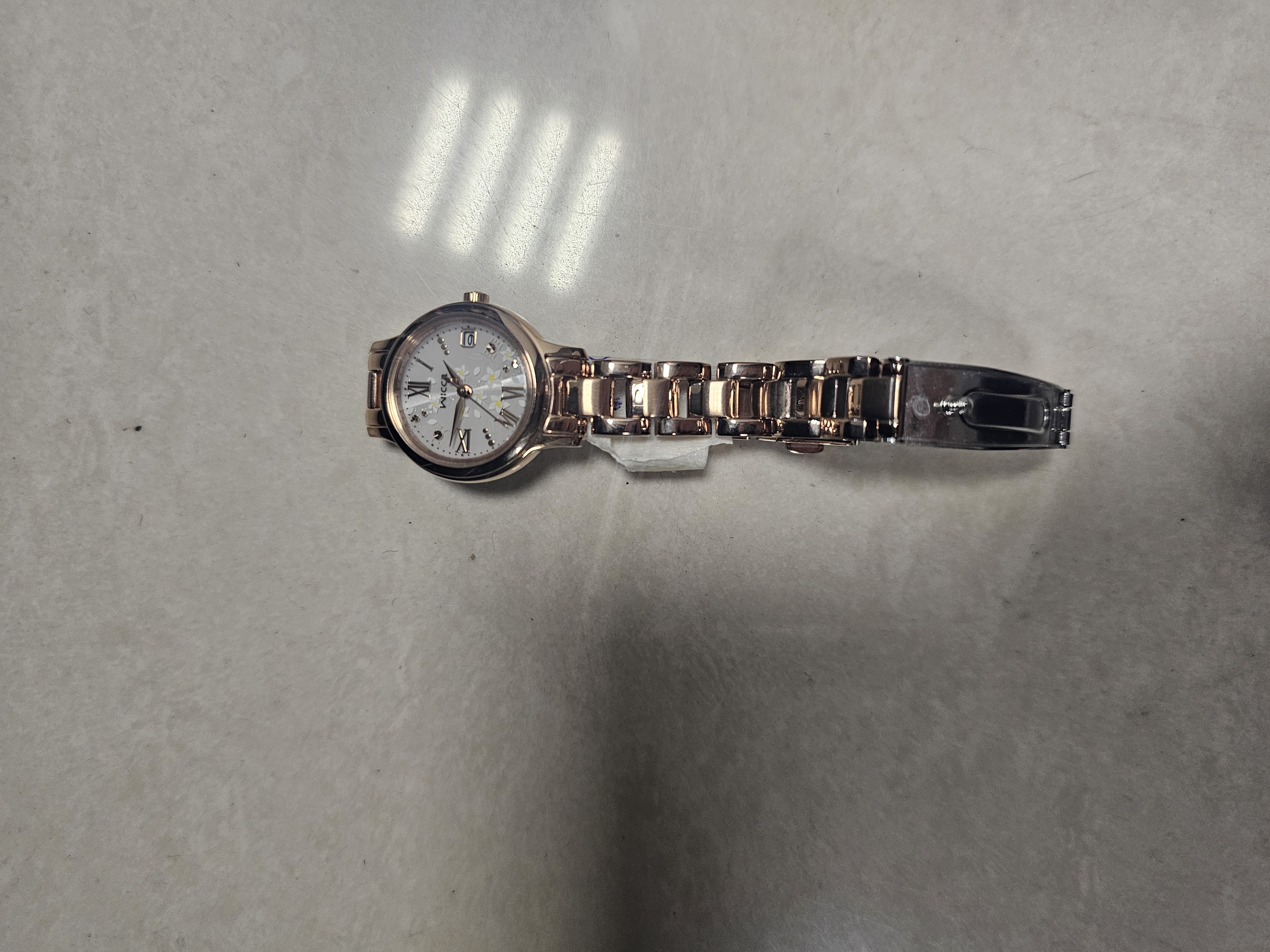 01 đồng hồ dây kim loại màu vàng hồng, được tìm thấy vào