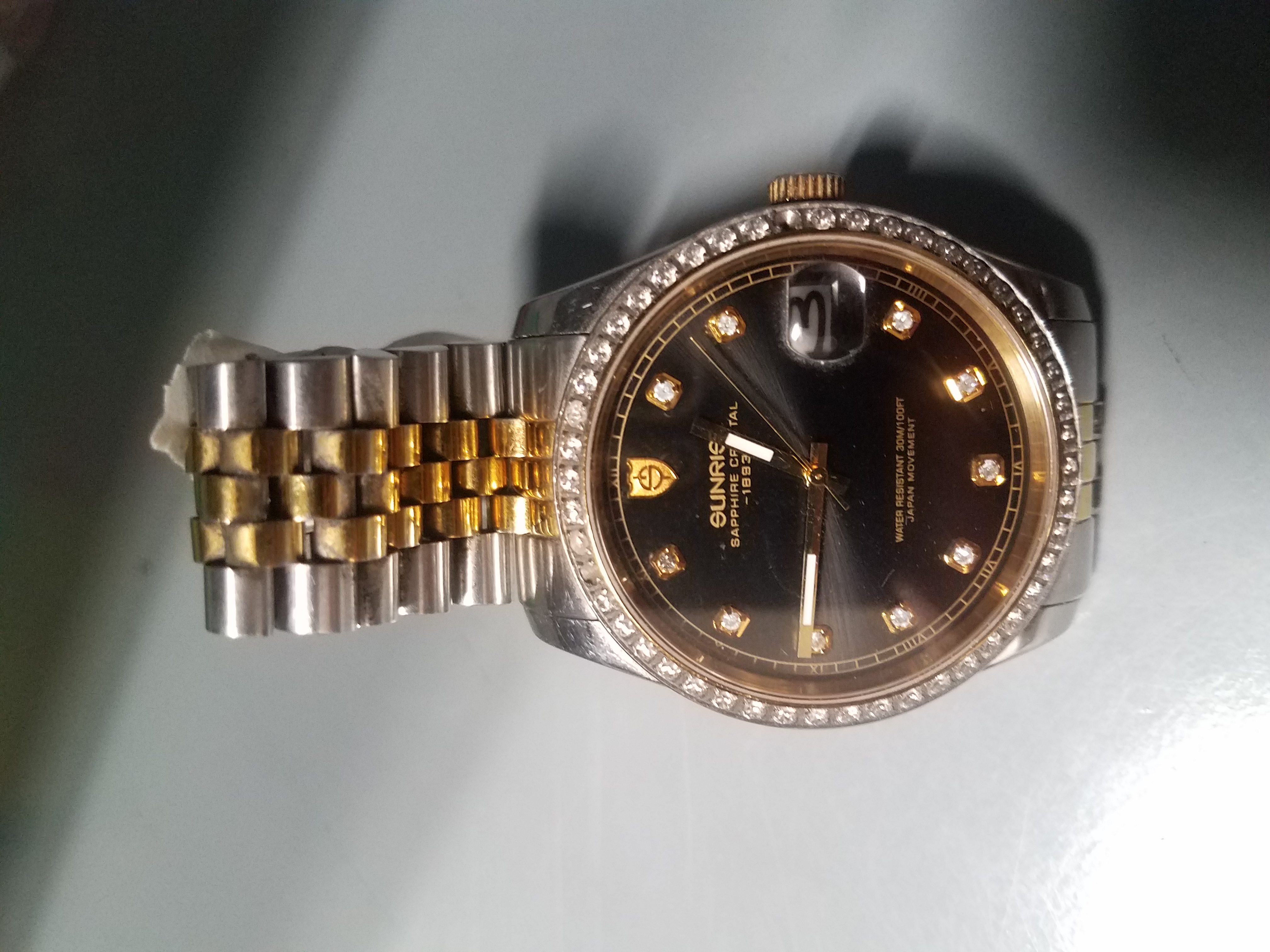 01 đồng hồ hiệu sunrise kim loại màu trắng vàng, được tìm thấy ở Phòng chờ cách ly quốc nội ngày 31/10/2023