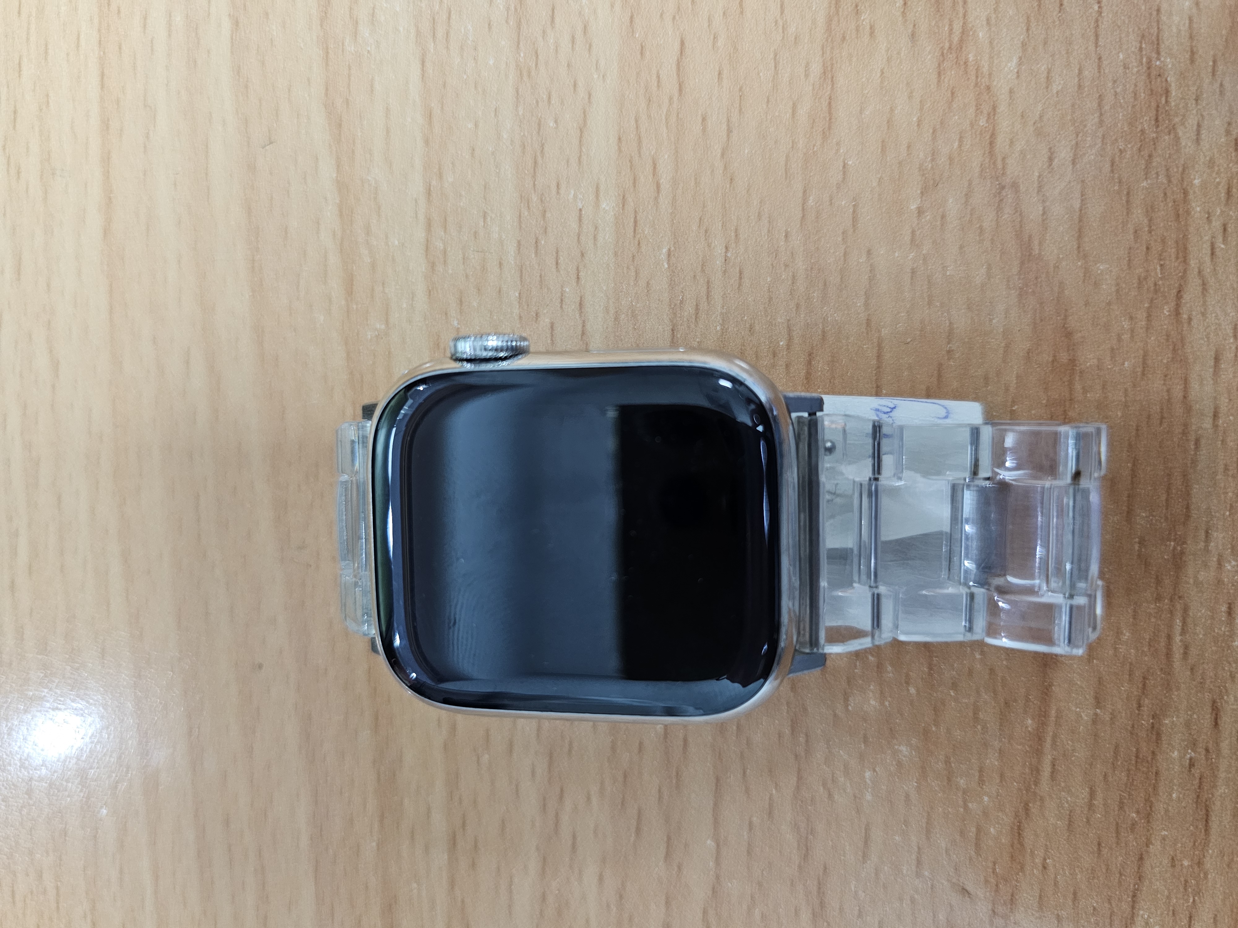 01 đồng hồ hiệu thông minh hiệu APPLE, dây nhựa trong suốt, được tìm thấy vào ngày 06/05/2025