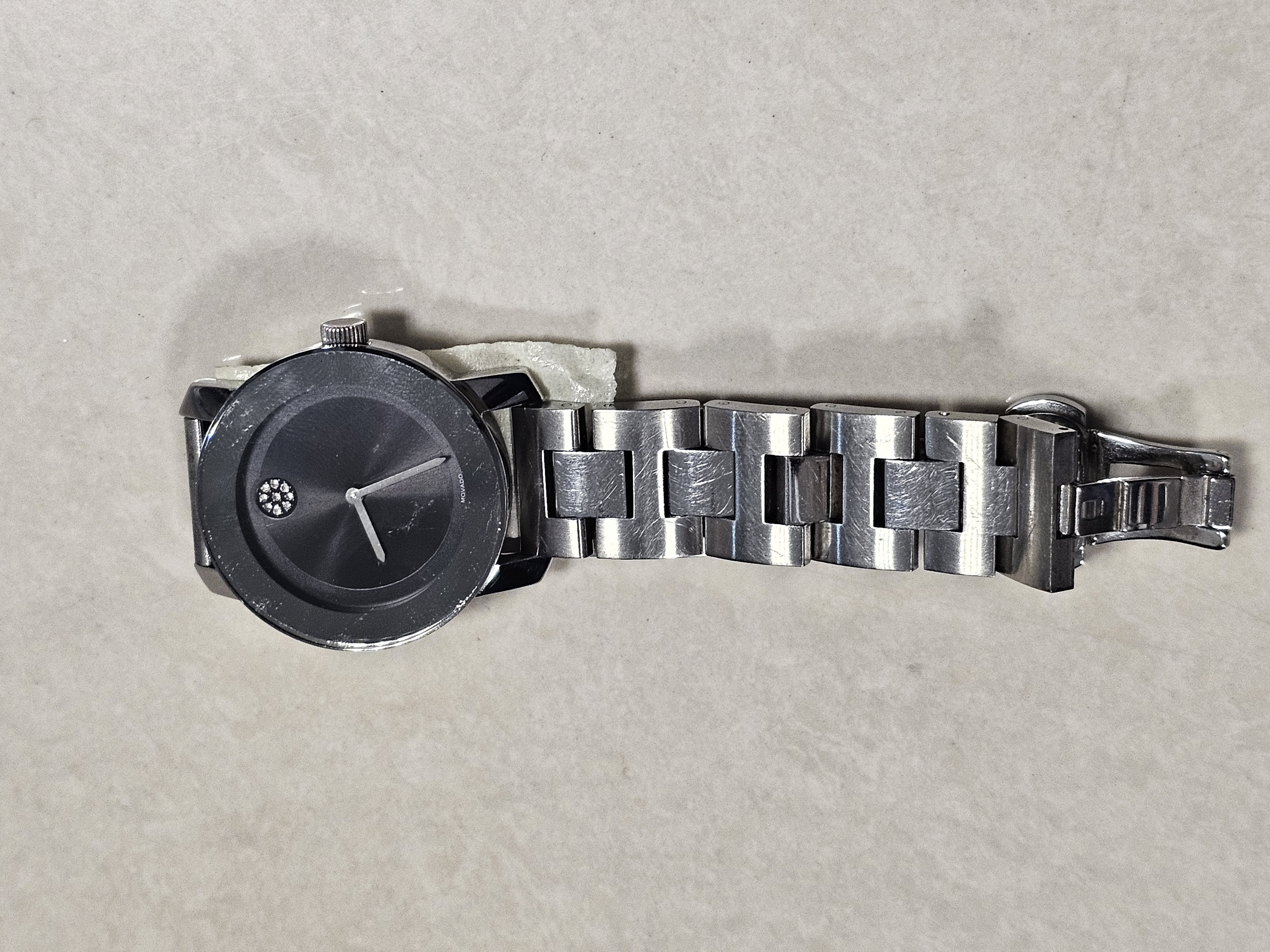 01 đồng hồ kim loại màu bạc hiệu MOVADO BOLD, được tìm thấy ở ANSC HLXT quốc nội vào ngày 10/02/2025